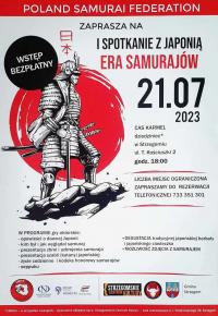 W najbliższy piątek będzie można posłuchać opowieści o dawnej Japonii, poznać sztuki walki samurajów, a na deser spróbować oryginalnej herbaty i ciastek z Kraju Kwitnącej Wiśni. 21 lipca o godzinie 18.00 na wirydarzu strzegomskiego CAS Karmel odbędzie się I Spotkanie z Japonią „Era Samurajów”.