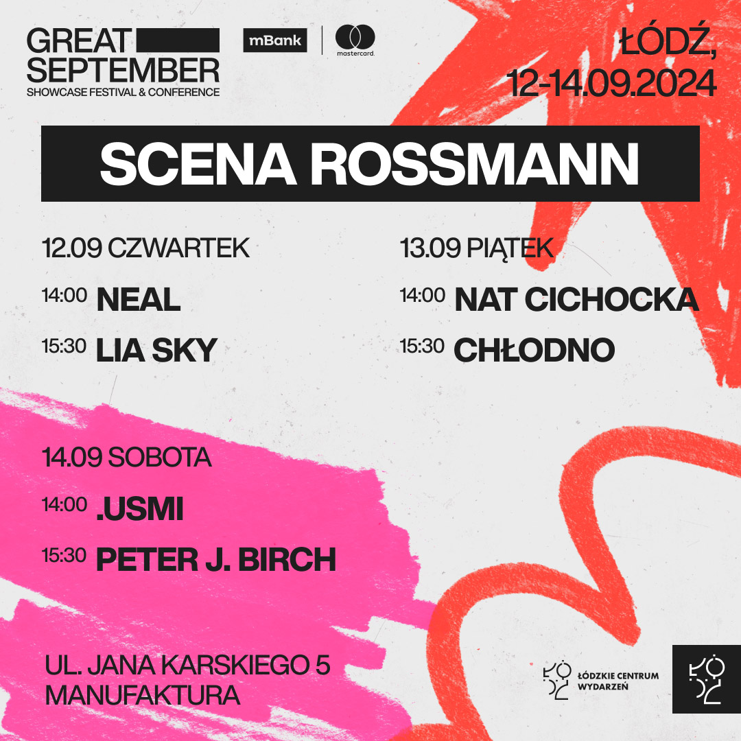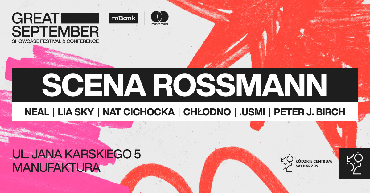 W dniach 12-14 września odbędzie się 3 odsłona festiwalu Great September Showcase Festival & Conference w Łodzi. Rossmann, oprócz sponsorowania wydarzenia, zaprasza również na swoją scenę w drogerii w Manufakturze.