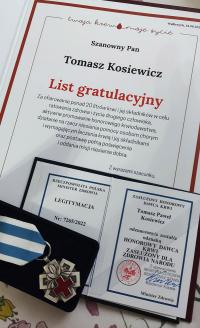 Resortowe odznaczenia Ministra Zdrowia za oddanie 20 litrów krwi lub jej składników otrzymał Tomasz Kosiewicz ze Strzegomia oraz Jacek Ślęczkowski z Goczałkowa.