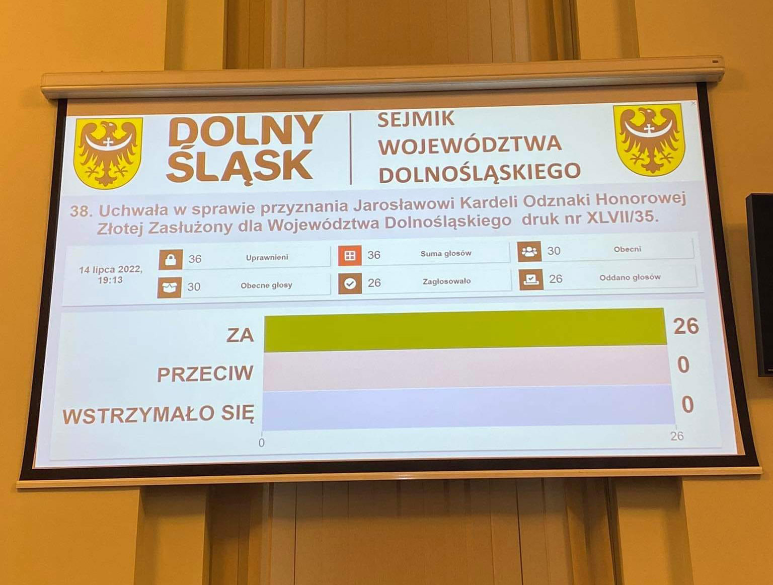 14 lipca radni Sejmiku Województwa Dolnośląskiego jednogłośnie przyznali mieszkańcowi gminy Strzegom – Jarosławowi Kardeli Złotą Odznakę Honorową „Zasłużony dla Województwa Dolnośląskiego”. – To dla mnie ogromny zaszczyt i jeszcze większa motywacja do pracy u podstaw dla naszych ziem zachodnich – mówi odznaczony członek Klubu Gazety Polskiej.