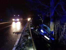 28 grudnia na drodze wojewódzkiej nr 374 doszło do groźnie wyglądającego zdarzenia drogowego. Mężczyzna zjechał do rowu, pokonując zaporę drogową i następnie oparł się bokiem pojazdu o drzewo. Kierującego odtransportowano do szpitala.