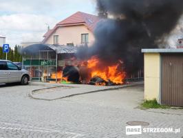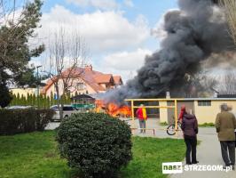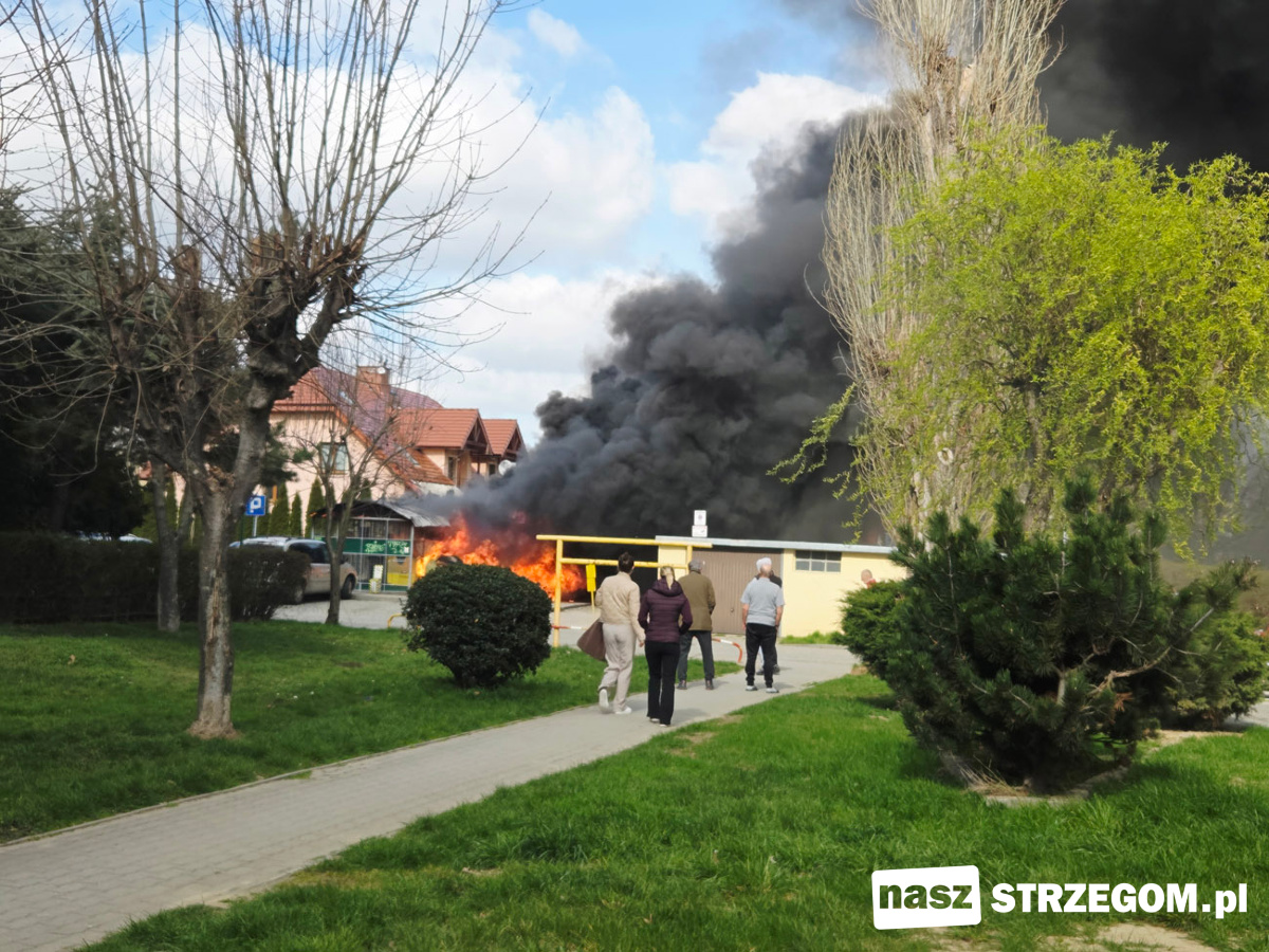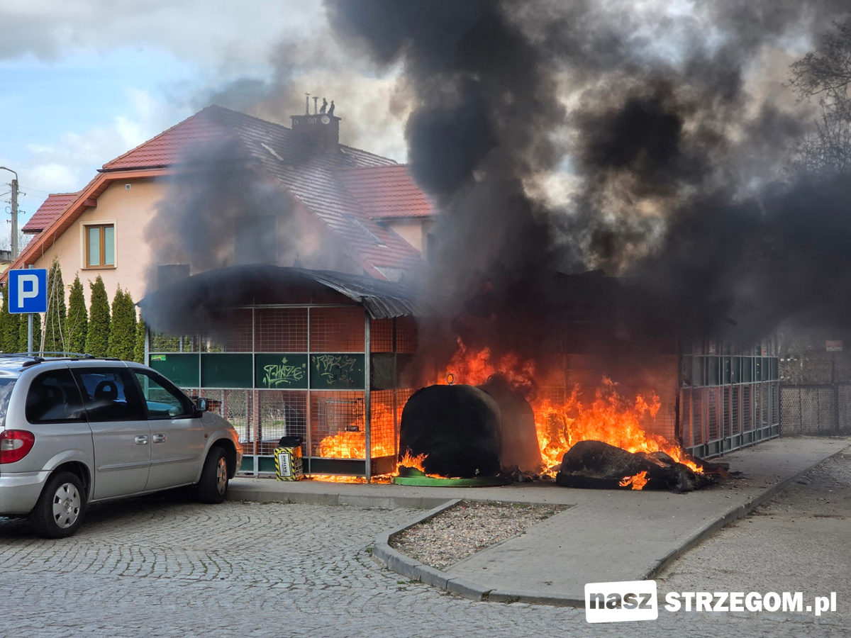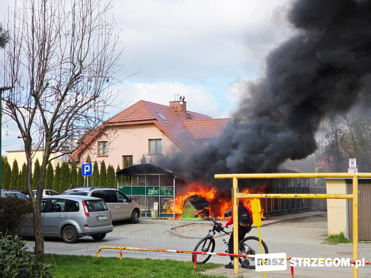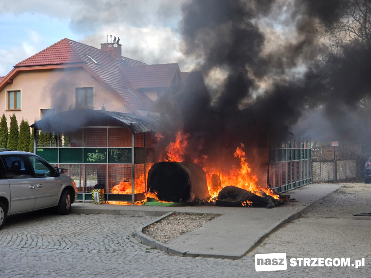 Kłęby czarnego dymu unosiły nad Osiedlem Piastów w Strzegomiu. 1 kwietnia przy ulicy Kochanowskiego doszło do pożaru altany śmietnikowej.