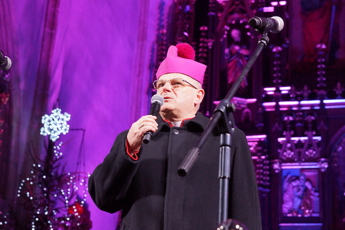 Bożonarodzeniowe koncerty w Strzegomiu są już tradycją i oprócz możliwości wspólnego kolędowania, dają okazję do składania świątecznych życzeń. Podczas wydarzenia swoje słowa do przybyłych gości skierował burmistrz Strzegomia, Zbigniew Suchyta, wiceminister klimatu i środowiska Ireneusz Zyska, biskup świdnicki Marek Mendyk oraz ks. prałat Marek Babuśka - proboszcz parafii pw. Św. App. Piotra i Pawła.