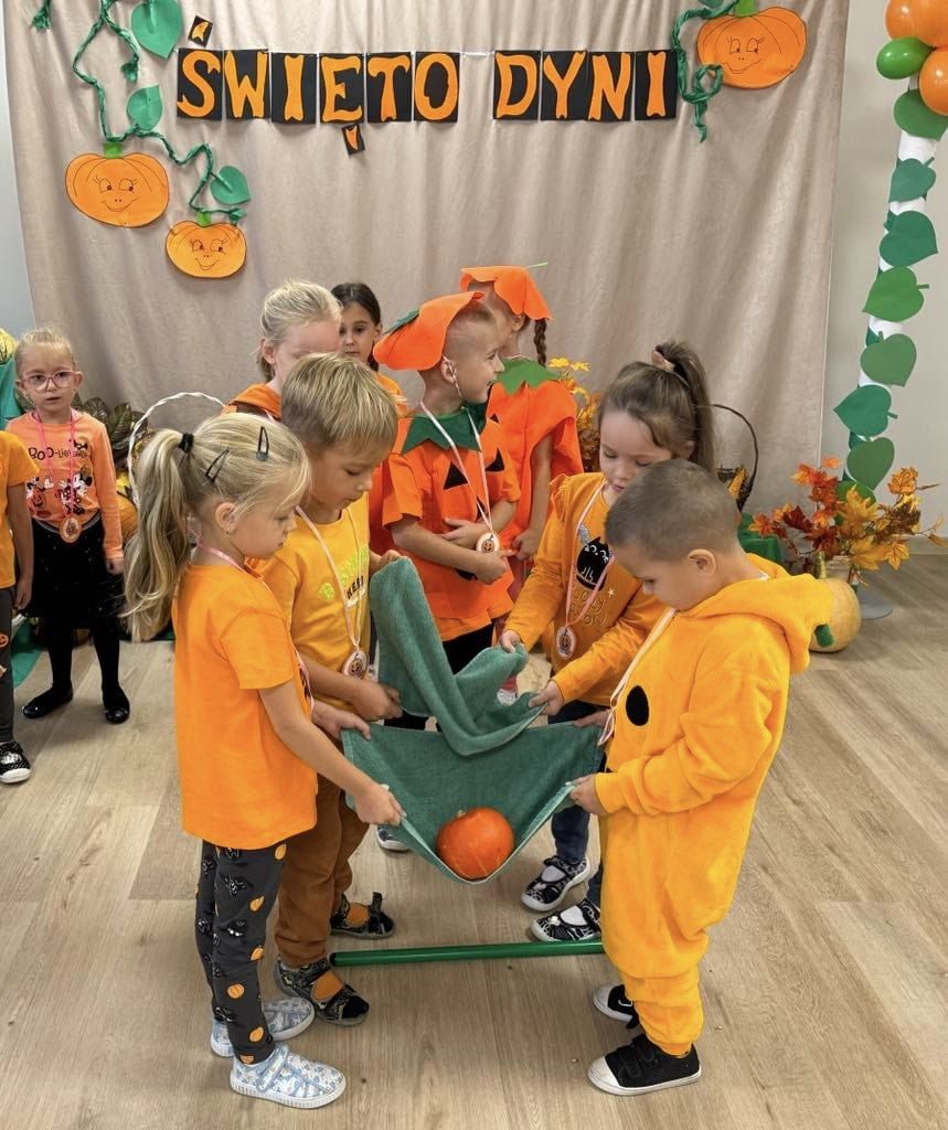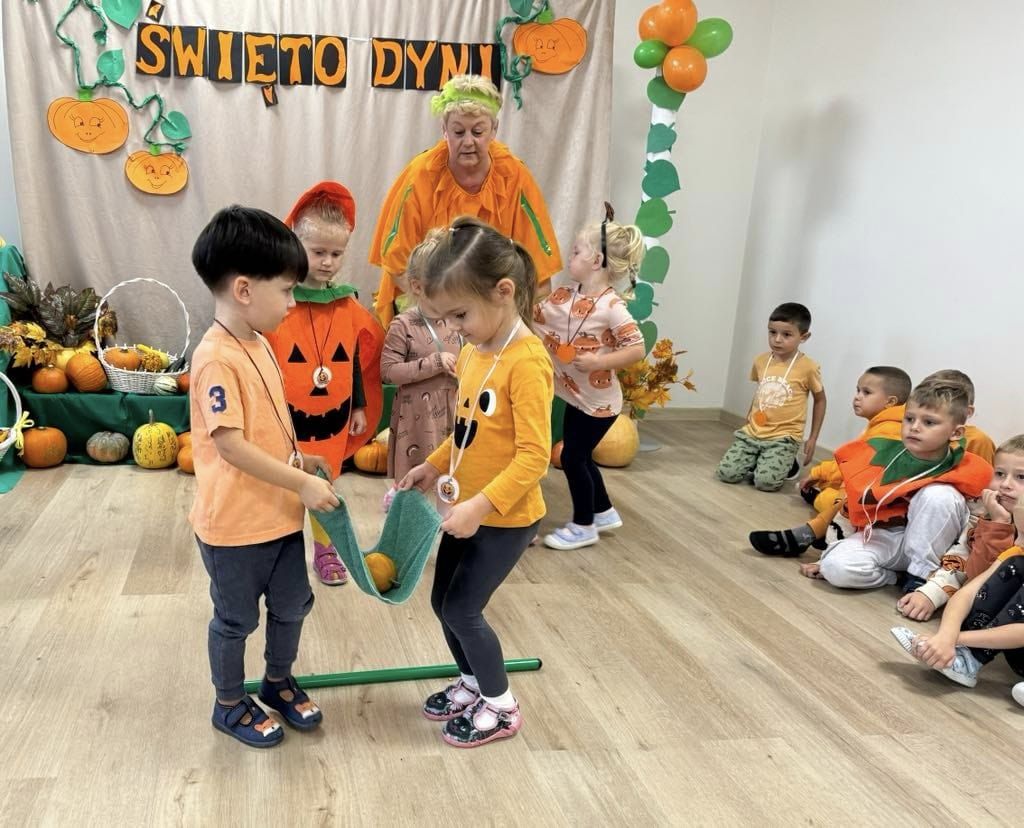 Przedszkolaki, przebrane w dyniowe stroje, brały udział w licznych konkursach i grach, a radość i śmiech wypełniały przedszkolne sale. Festiwal nie tylko integrował dzieci, ale także rozwijał ich kreatywność, podkreślając przy tym piękno jesiennej natury.