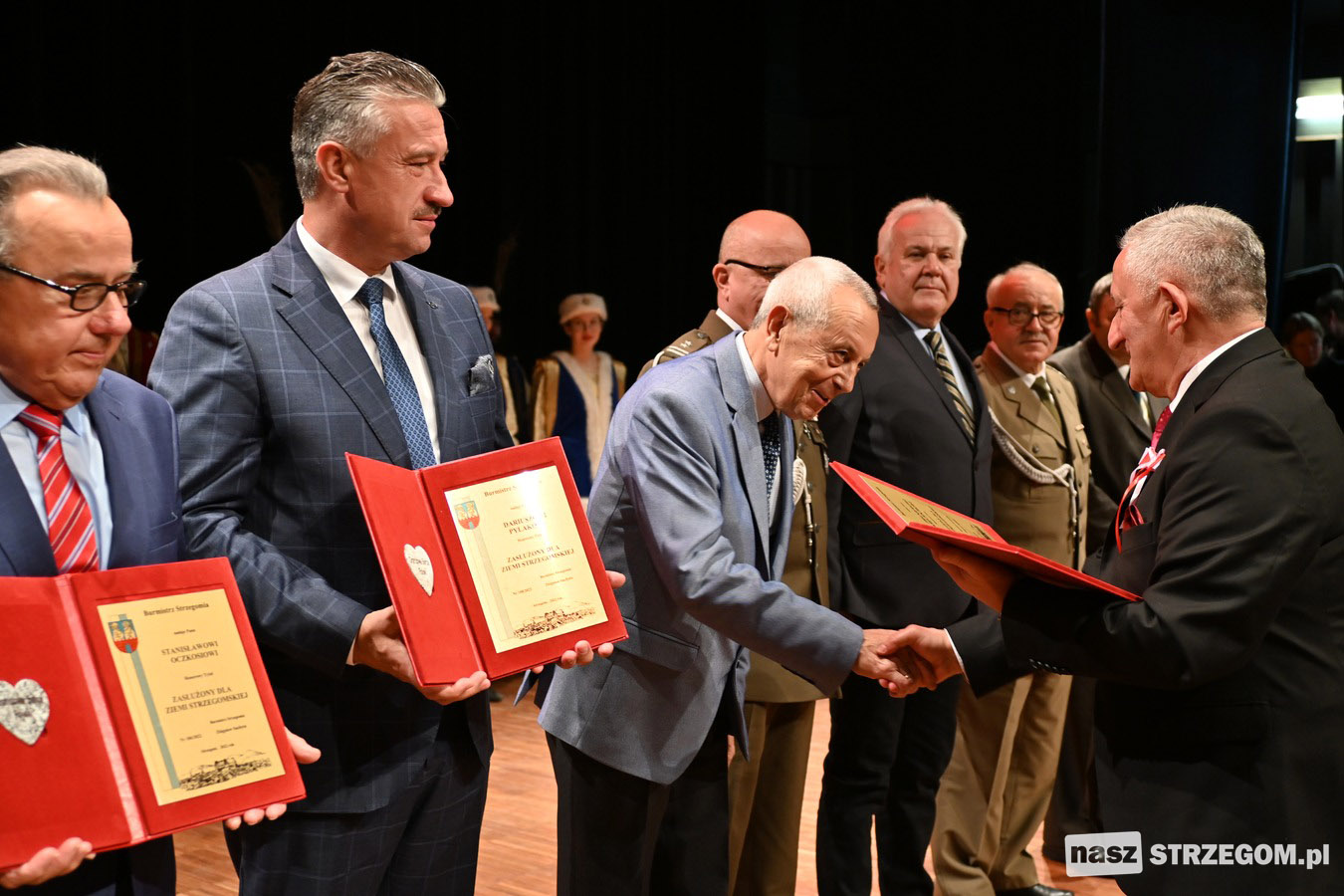 Honorowy tytuł „Zasłużony dla Ziemi Strzegomskiej” za gospodarczy, kulturalny lub społeczny wpływ na rozwój i promocję gminy Strzegom zyskali: Janina Klonowska, Stanisław Oczkoś, Dariusz Pylak, płk rez. Adam Duś, płk rez. Zbigniew Kręcioch, ppłk rez. Mariusz Krzak, mjr rez. Mikołaj Fojna, st. chor. sztab. rez. Ignacy Kosiński.