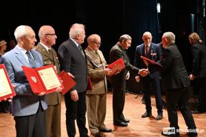 Medal „Pro Bono Poloniae” przyznawany osobom wyróżniającym się w upowszechnianiu wiedzy o historii walk niepodległościowych i krzewieniu postaw patriotycznych zawisł na piersi: gen. bryg. Macieja Siudaka, płk Szymona Lepiarza, mjr Dariusza Chadzińskiego oraz Tadeusza Wasyliszyna.