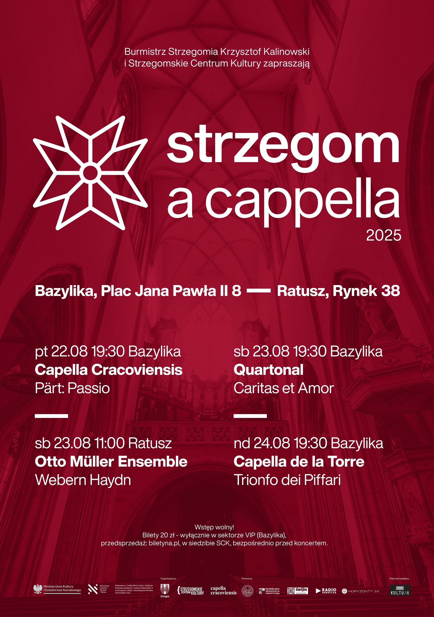 Na wydarzenie zapraszają burmistrz Strzegomia Krzysztof Kalinowski wraz ze Strzegomskim Centrum Kultury. Wstęp na wszystkie koncerty jest nieodpłatny, jednak organizatorzy przygotowali także płatne wejściówki w sektorze VIP w Bazylice Mniejszej (dostępne online i w siedzibie SCK).
