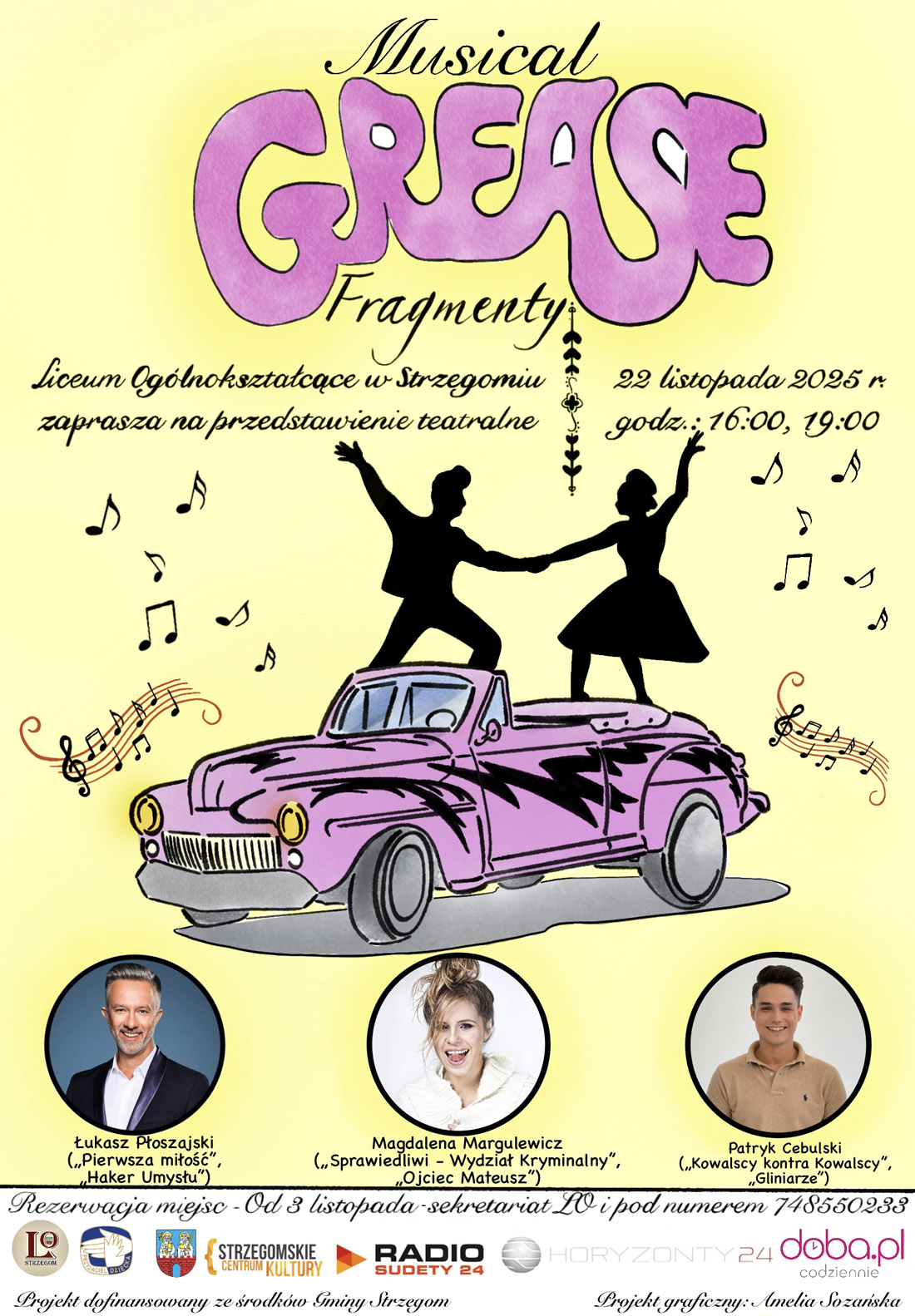 Aulę Liceum Ogólnokształcącego im. Stefana Żeromskiego w Strzegomiu po raz dziewiętnasty wypełni teatralny klimat. Tym razem uczniowie, kadra szkoły oraz zaproszeni goście zmierzą się z „Grease” – klasyką musicalu z lat `50. W spektaklu wystąpią zawodowi aktorzy: Łukasz Płoszajski, Magdalena Margulewicz i Patryk Cebulski.