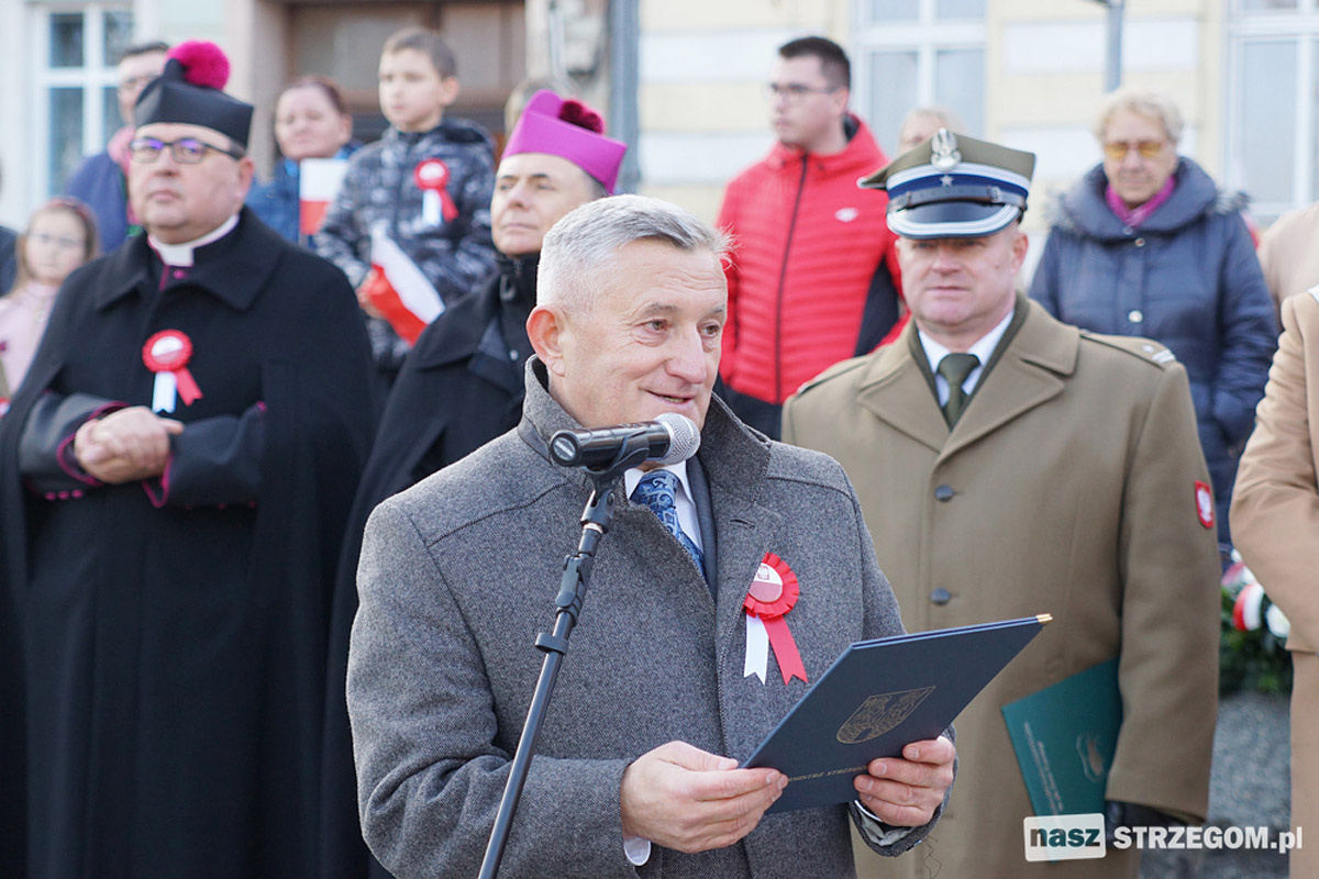 Tegoroczne obchody Narodowego Święta Niepodległości w Strzegomiu rozpoczęły się od wciągnięcia flagi narodowej przy Bazylice Mniejszej. Nie zabrakło uroczystej mszy św., wojskowej asysty honorowej oraz programu artystycznego w Strzegomskim Centrum Kultury. Nie zawiedli także strzegomscy motocykliści.