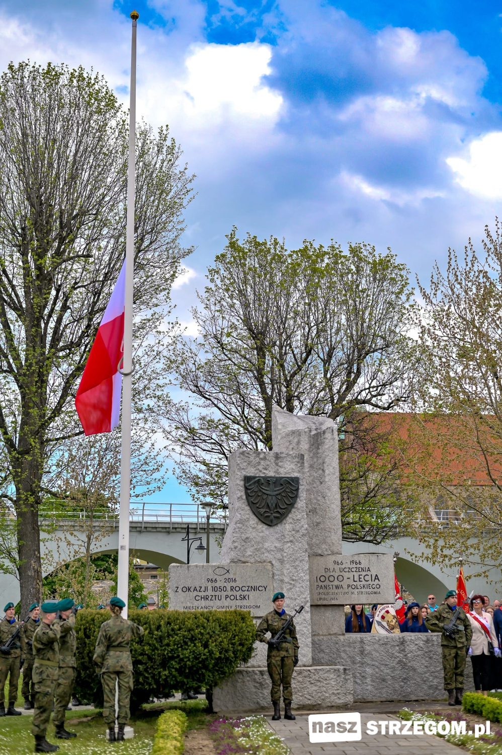 Po mszy uczestnicy obchodów przeszli na skwer przy skrzyżowaniu ulic Świdnickiej i Kasztelańskiej w Strzegomiu. Przy pomniku 1050. rocznicy Chrztu Polski odczytano Apel Pamięci, oddano salwę honorową oraz złożono wiązanki i znicze.
