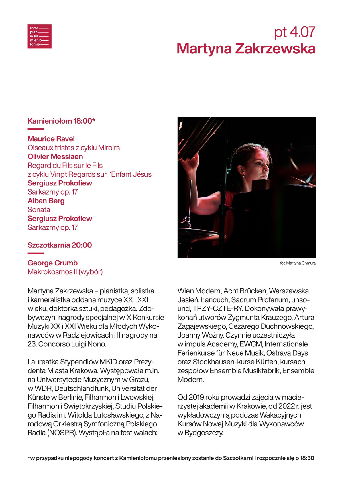 Wicedyrektor Strzegomskiego Centrum Kultury, Tomasz Smagłowski, informuje, że w tym roku Strzegom odwiedzą wybitni pianiści młodego pokolenia: Martyna Zakrzewska, Petra Somlai, Piotr Pawlak oraz artyści z formacji Fortepiano Atelier.