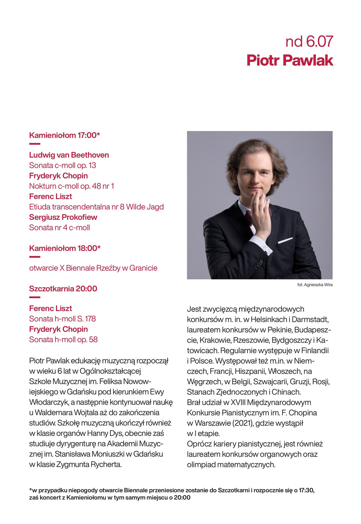 Strzegom od kilku lat jest ważnym punktem na muzycznej mapie letnich festiwali muzyki klasycznej w Polsce. W dniach 4-6 lipca br. w niepowtarzalnej konstelacji zieleni, surowego kamieniołomu oraz klasycznego instrumentu powróci cykl koncertów plenerowych pn. „Fortepian w Kamieniołomie”. W tym roku artyści zagrają także w nowych przestrzeniach miasta.