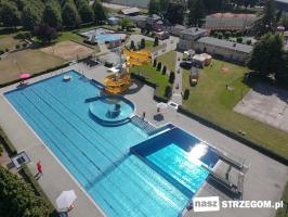 Otwarcie basenu letniego w Strzegomiu nastąpiło w sobotę o godzinie 10.00. Na miłośników wodnego wypoczynku czeka wiele atrakcji: trampoliny, ławki i leżanki z masażem, grota sztucznej fali, rwąca rzeka, masaże ścienne, masaż karku, siatka do wspinaczki z wyspą i zjeżdżalnia o długości 71,5 m.