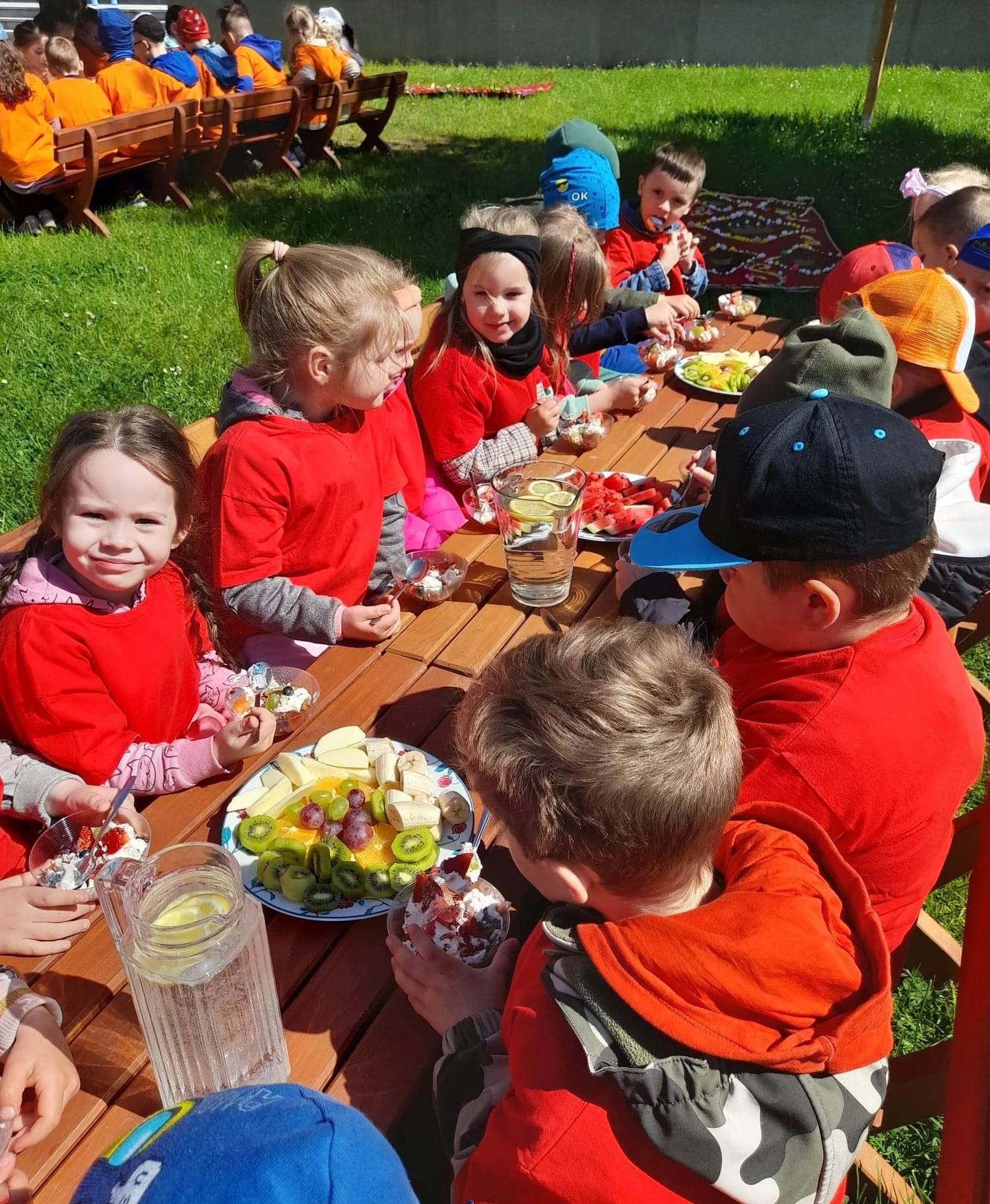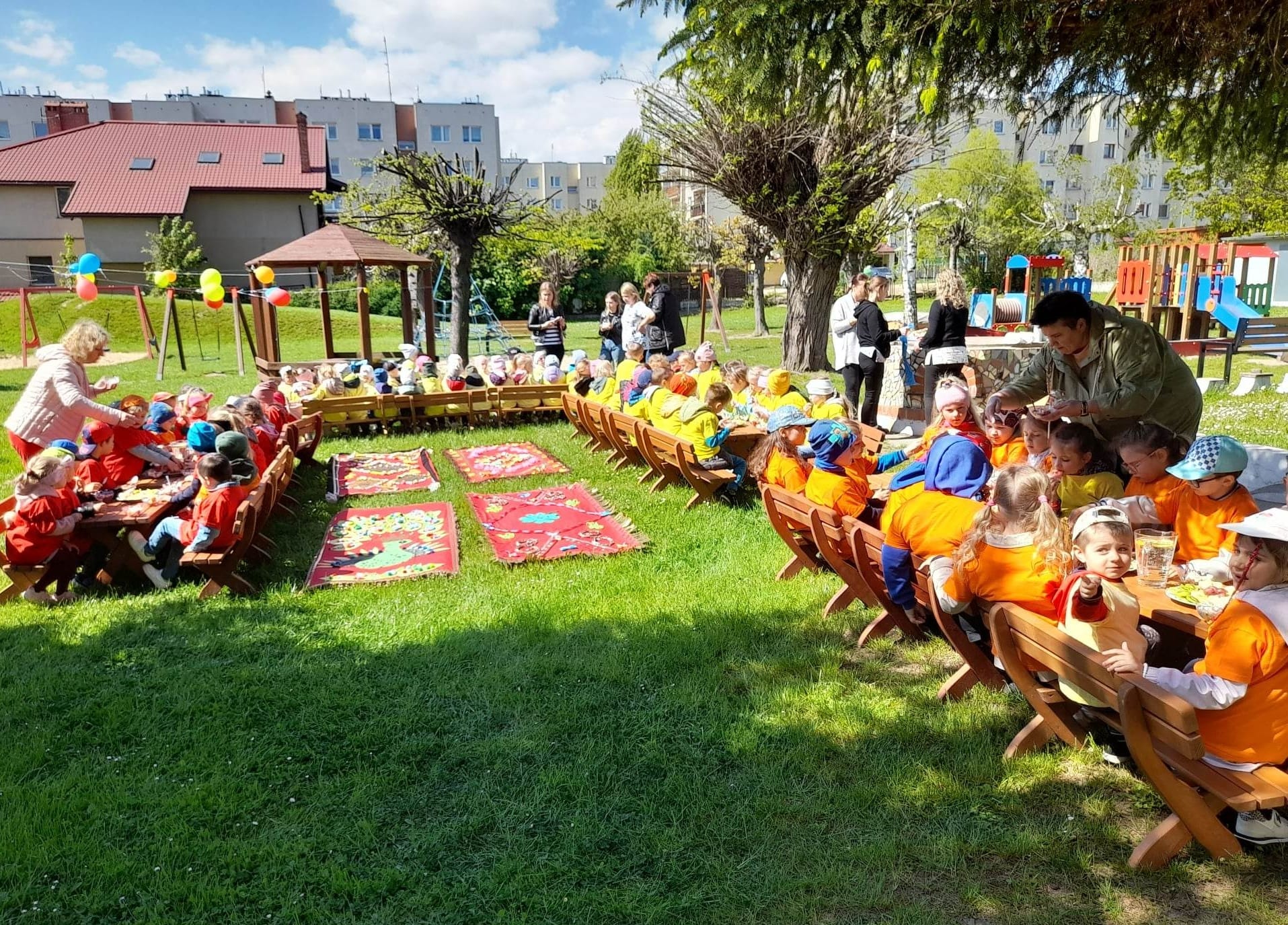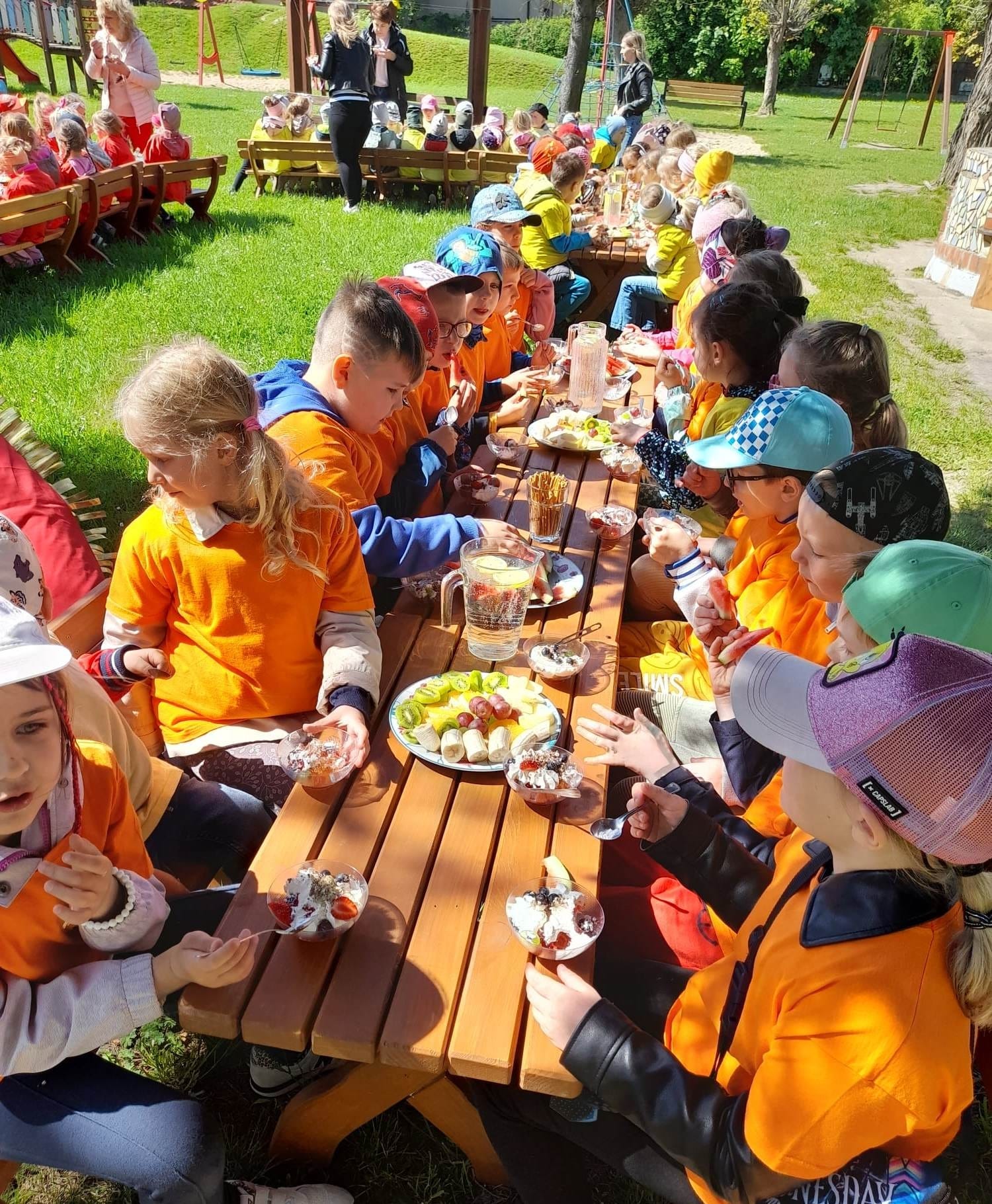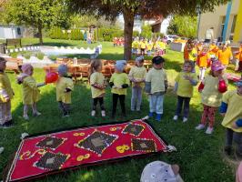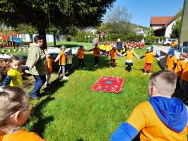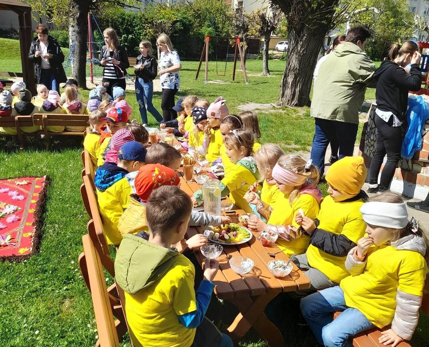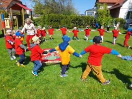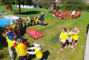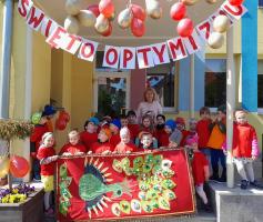 Finał XII edycji Ogólnopolskiego Święta Optymizmu obchodzono w przedszkolnym ogrodzie. Towarzyszyło mu wspólne odśpiewanie „Hymnu Optymistów”, zabawy oraz owocowy piknik. Wydarzeniu dopisała także aura, która rozgrzewała u wszystkich optymistyczny nastrój wiosennymi promieniami słońca.
