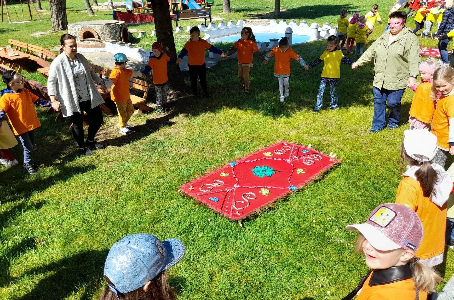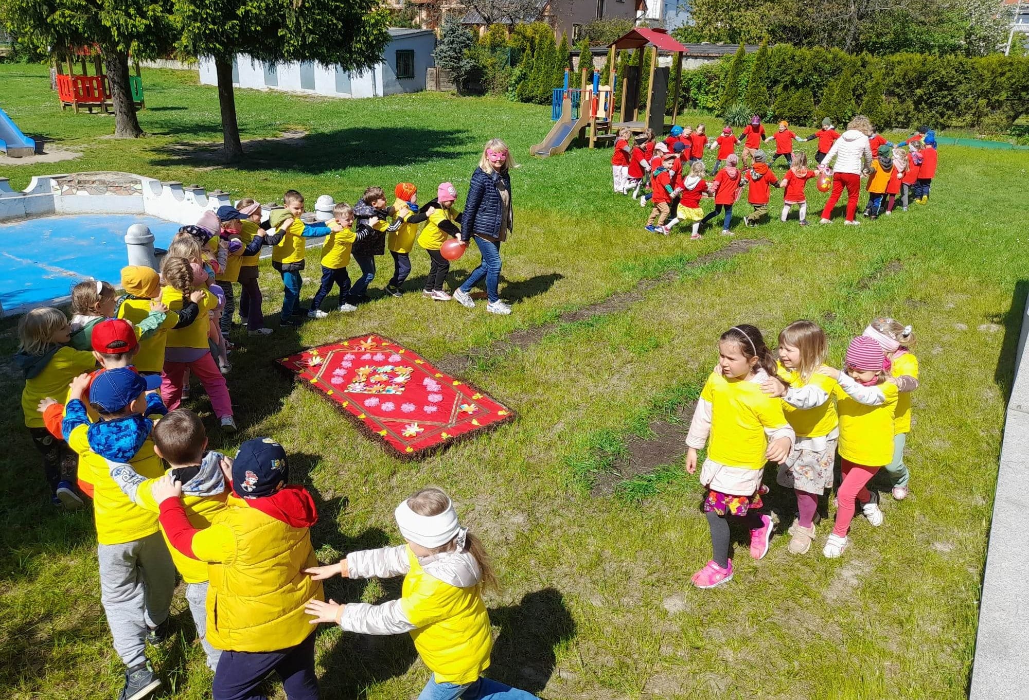 - Magia tego święta i moc czerwieni sprawiła, że były to niezwykłe dywany, na których z dziecięcą wyobraźnią i marzeniami unosiliśmy się w górę. Połączyliśmy się łańcuchem przyjaźni, radości i wesołej zabawy z optymistycznymi przedszkolami – relacjonuje dyrektor placówki, Wiesława Górka.