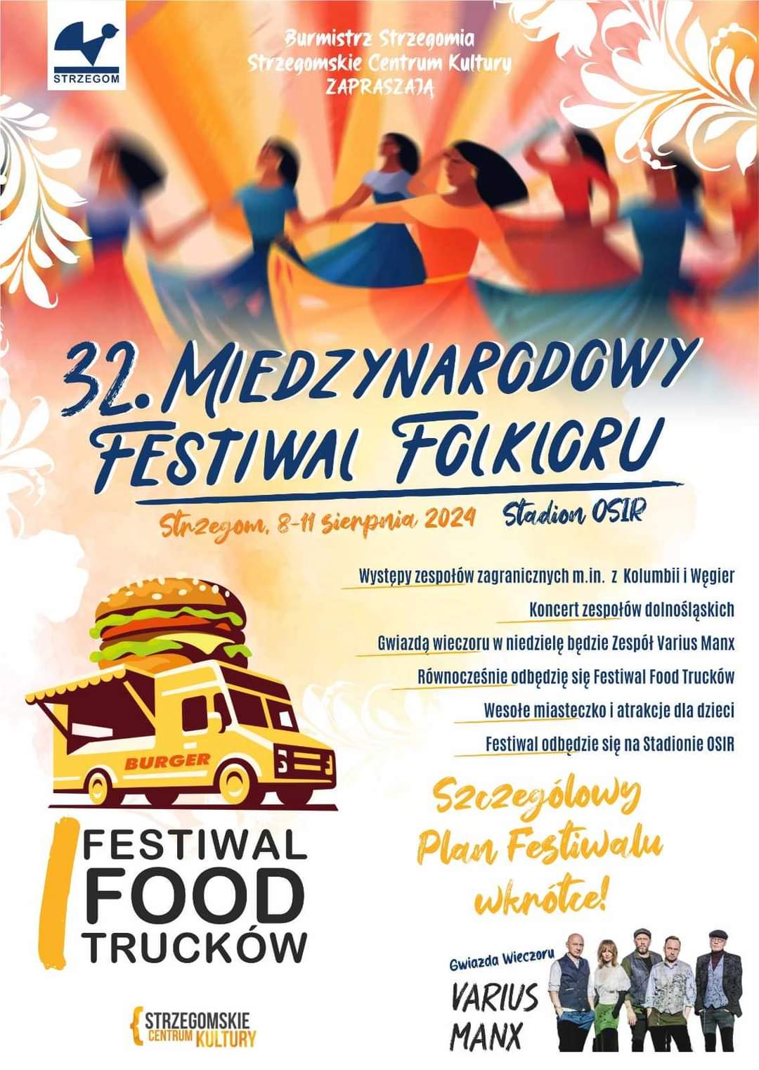 – Czterodniowy festiwal z występami zespołów folklorystycznych oraz przypadający w jego ostatni dzień -koncert kapel ludowych odbędą się na stadionie Ośrodka Sportu i Rekreacji w Strzegomiu. Niedzielny polonez oraz Rynek Świata z kulinarnym poczęstunkiem od zespołów odbędzie się w centrum miasta – mówi Elżbieta Pienio, dyrektor Strzegomskiego Centrum Kultury.