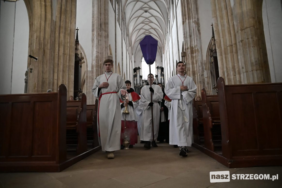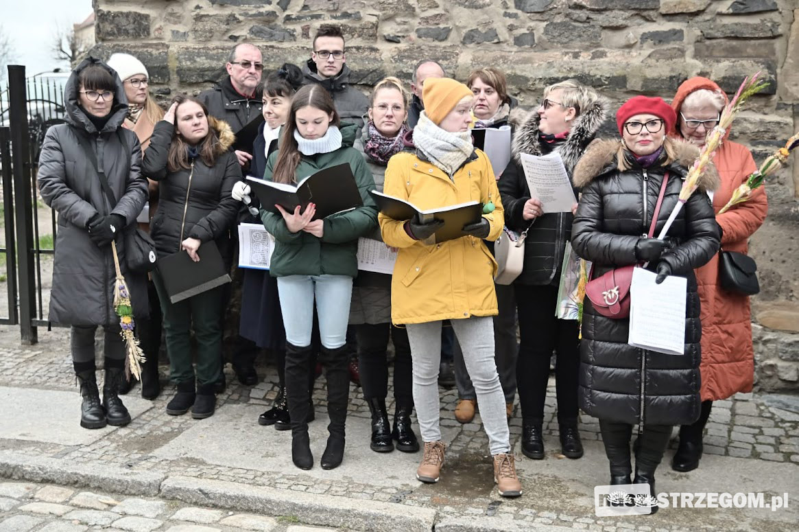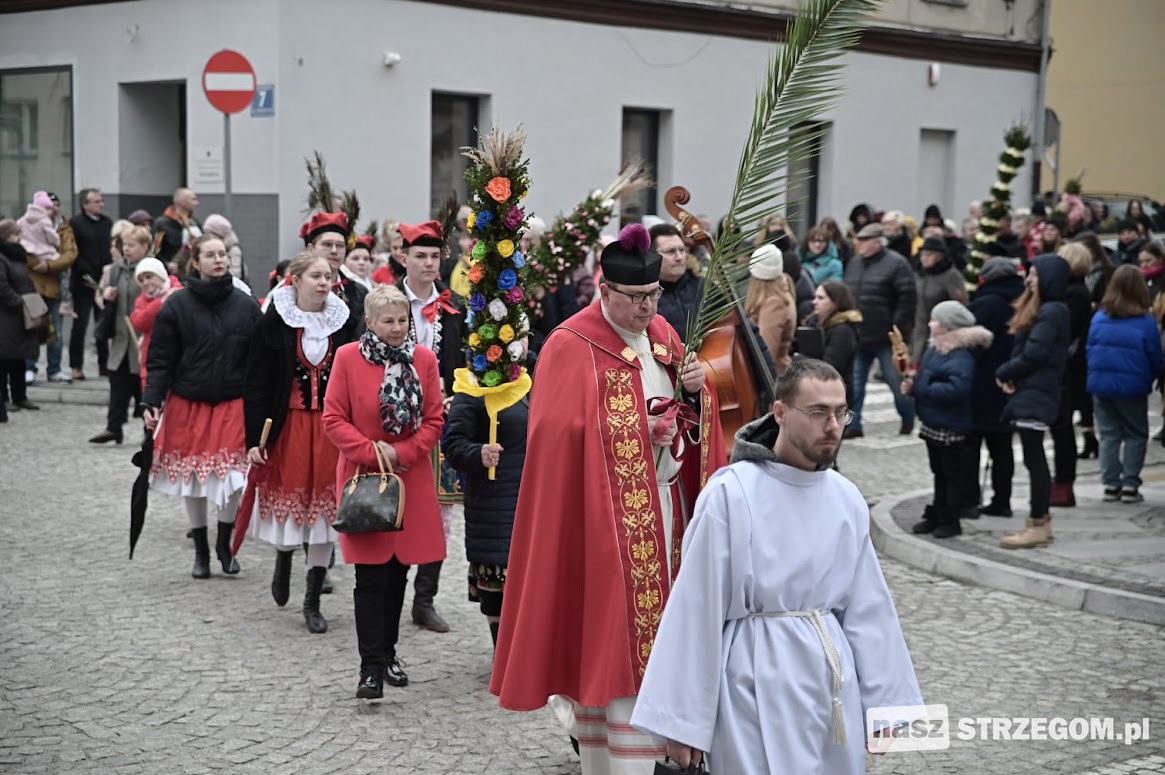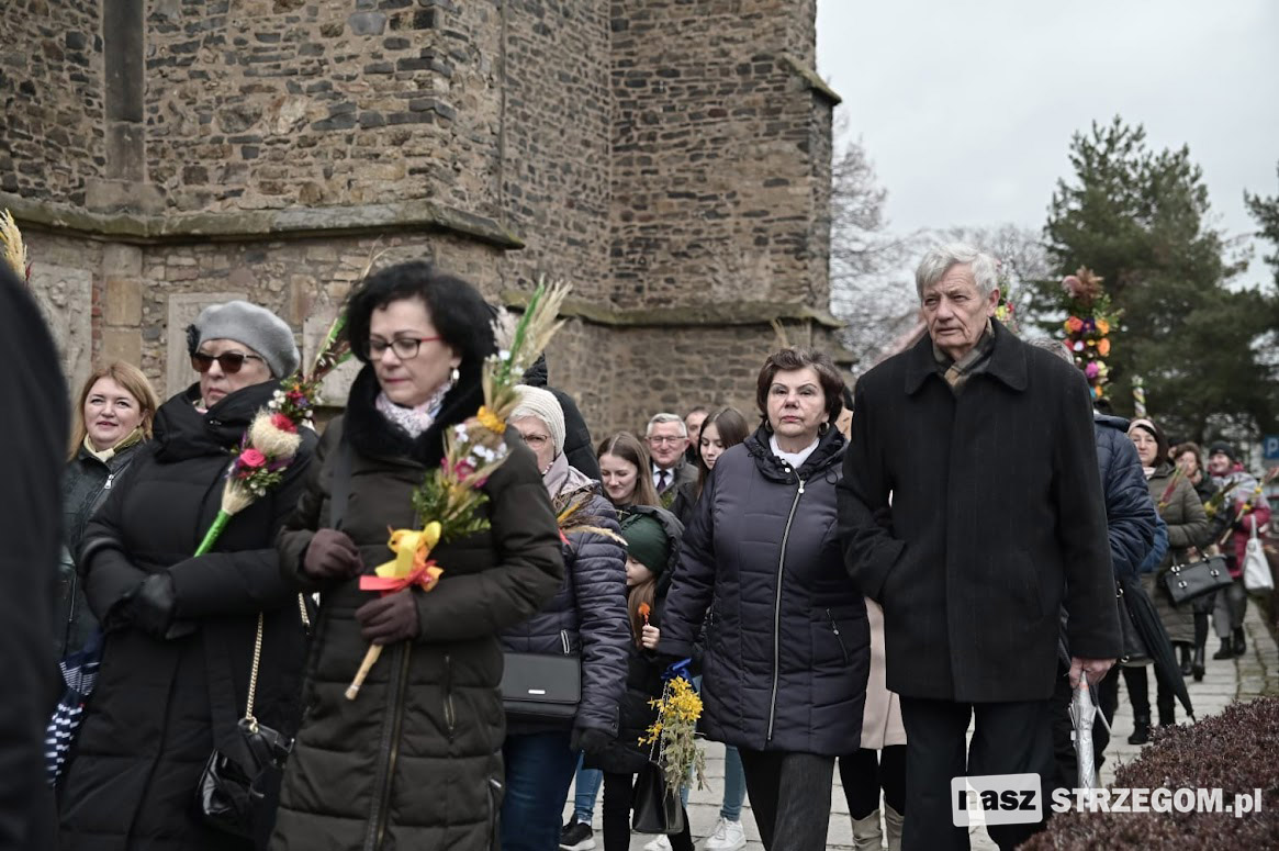Mieszkańcy miasta spotkali się pod kościołem pw. św. Barbary, gdzie nastąpiło uroczyste poświęcenie palm wielkanocnych, a następnie przeszli ulicami Strzegomia do Bazyliki Mniejszej.