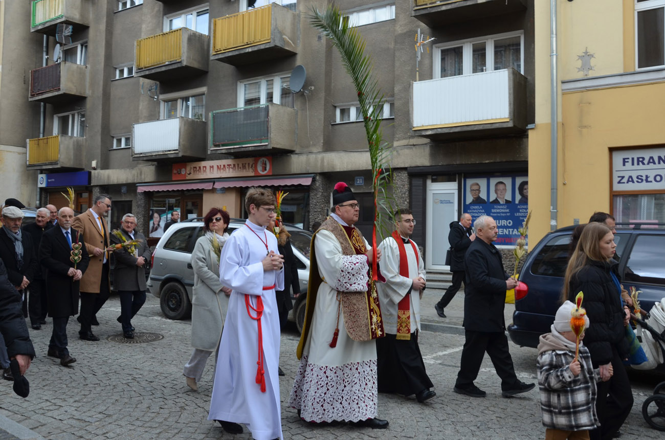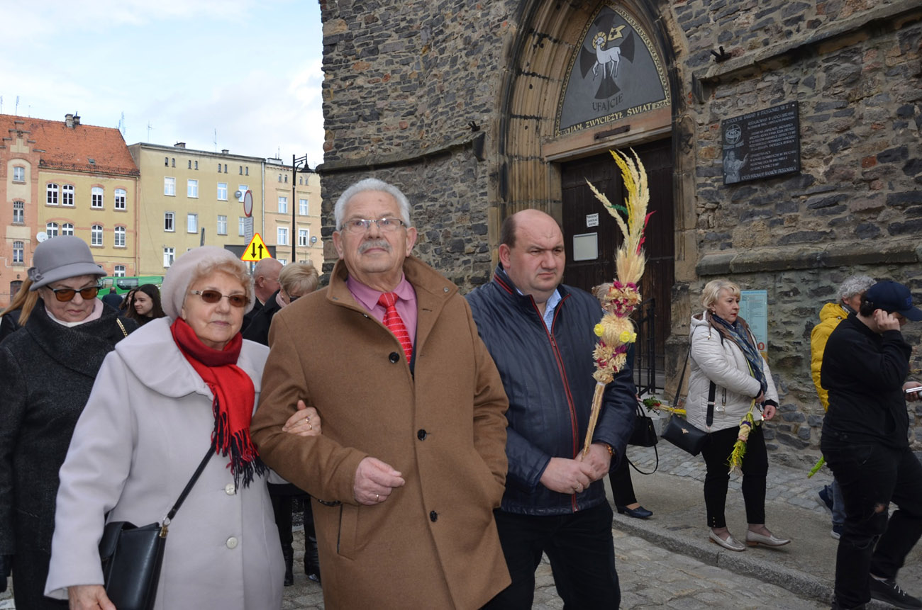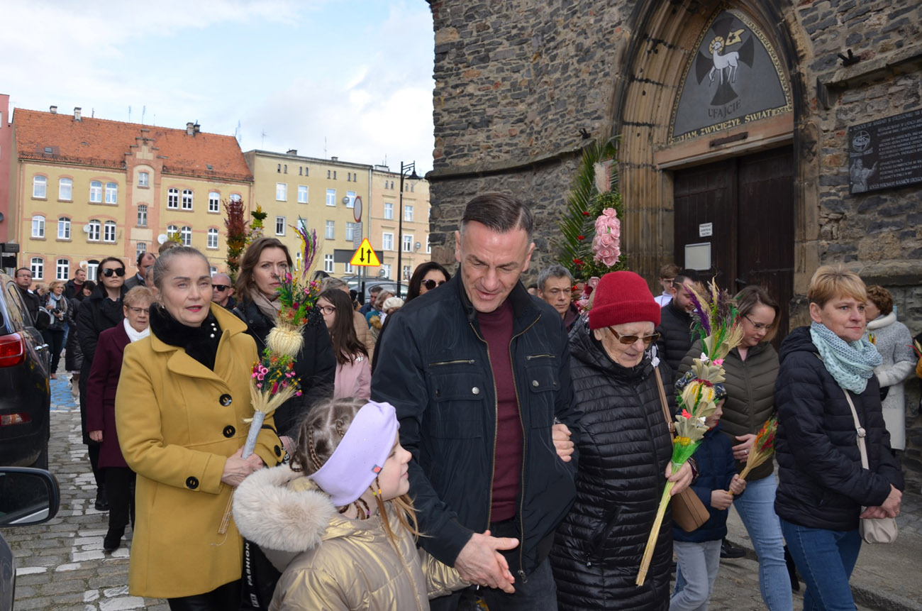 Mieszkańcy miasta spotkali się pod kościołem pod wezwaniem św. Barbary, gdzie nastąpiło uroczyste poświęcenie palm wielkanocnych, a następnie przeszli ulicami Strzegomia do Bazyliki Mniejszej, gdzie odbyła się msza św.
