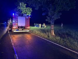 Pijany kierowca uderzył osobówką w drzewo. Dwie osoby zostały poszkodowane [FOTO]
