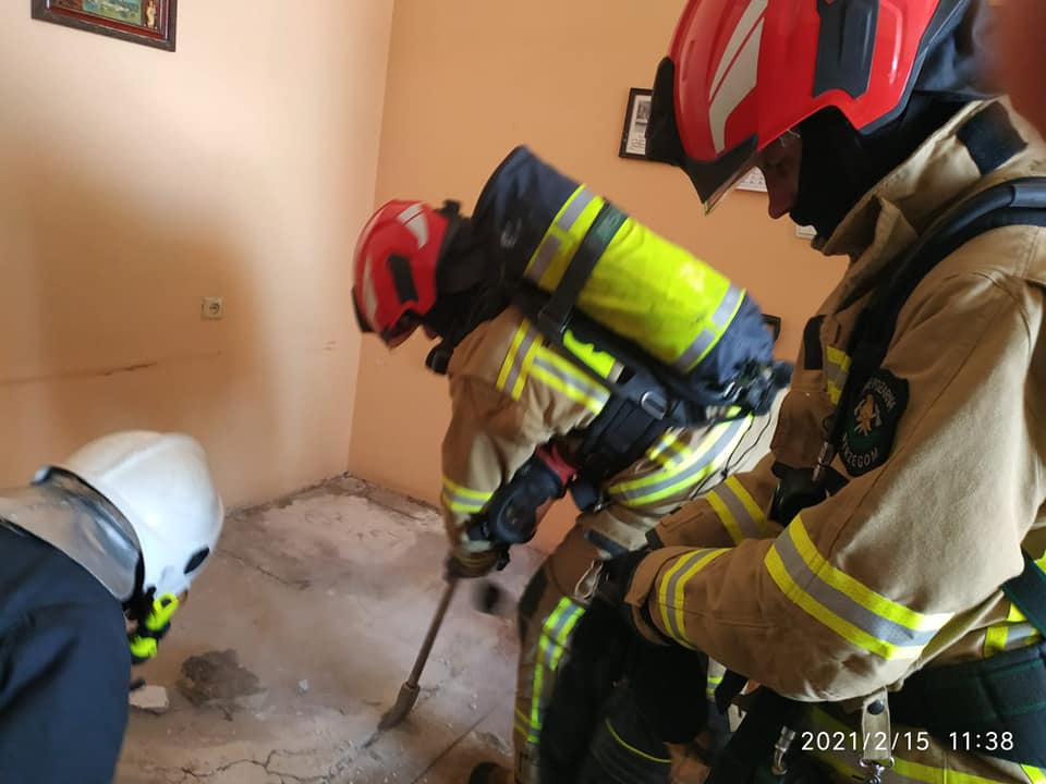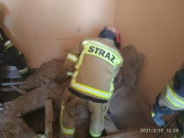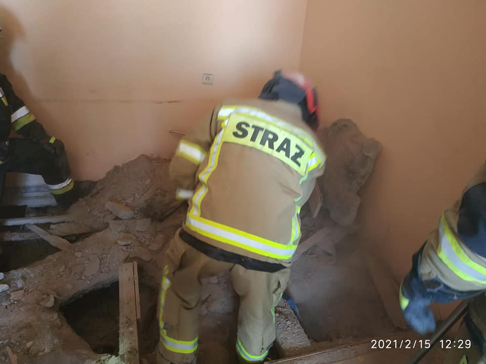 Strażacy musieli częściowo rozebrać podłogę, aby skutecznie zlikwidować powstałe zagrożenie.