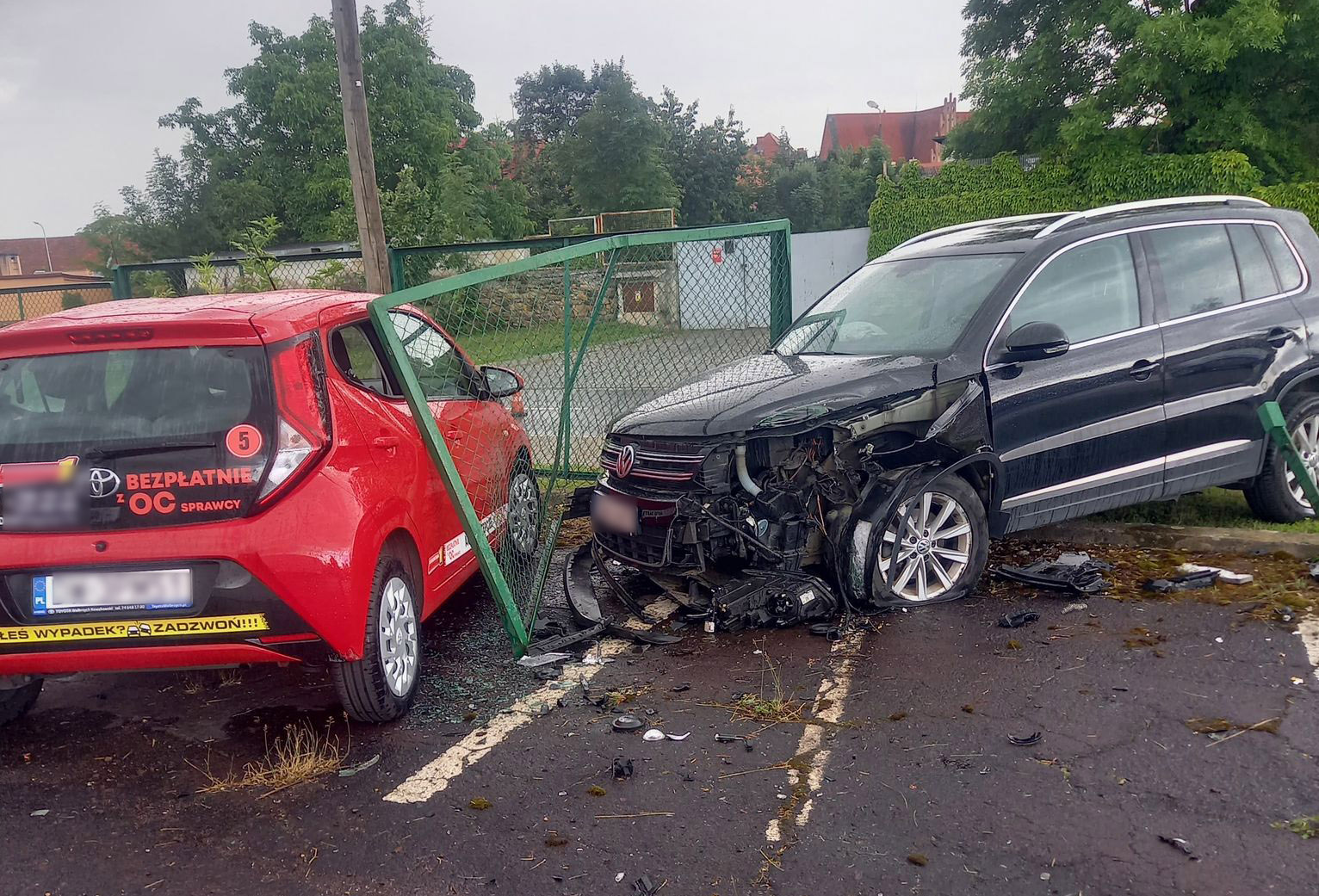- Do kolizji doszło o godzinie 13:47. Kierujący samochodem marki Citroen, wykonując manewr cofania uderzył w prawidłowo jadące ulicą Wesołą auto marki Volkswagen. W konsekwencji niemiecki pojazd uderzył w ogrodzenie jednej z firm i prawidłowo zaparkowany na jej terenie pojazd – informuje mł. asp. Magdalena Ząbek, oficer prasowy KPP w Świdnicy.