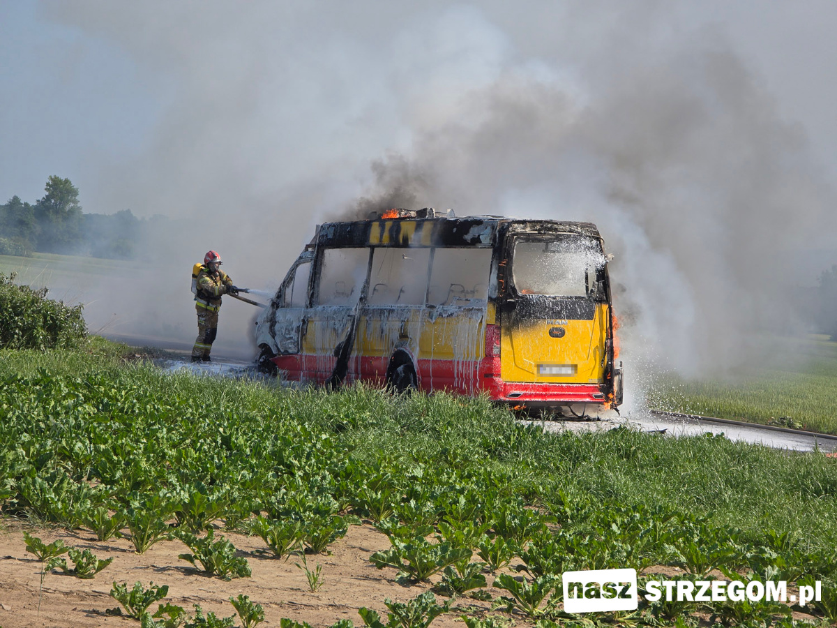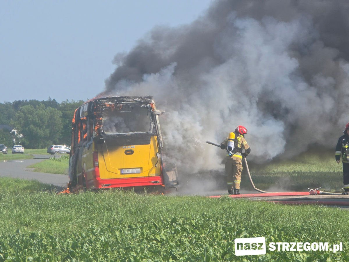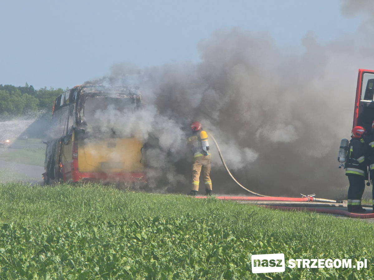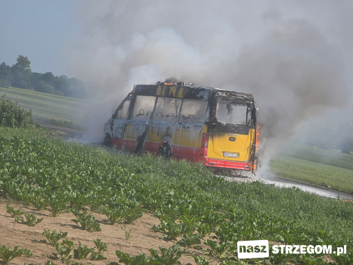 Cztery zastępy straży pożarnej zadysponowano na drogę między Strzegomiem a Morawą. 12 czerwca doszło tam do pożaru autobusu. Na szczęście pojazdem podróżował tylko kierowca.