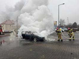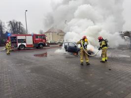 Pożar samochodu na sklepowym parkingu [FOTO]