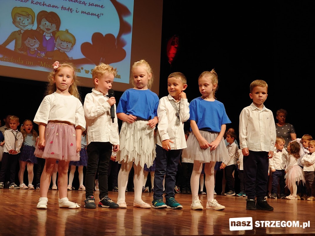 Mama i tata to słowa, w których mieści się cały świat dziecka. Wypowiadane od maleńkiego po dorosłość, pełne wiary, nadziei i miłości. Maluchy ze strzegomskiego Przedszkola nr 2 im. Misia Uszatka w piątek 24 maja uroczyście obchodziły święto Mamy i Taty. W Strzegomskim Centrum Kultury odbył się niezapomniany performance w wykonaniu najmłodszych.