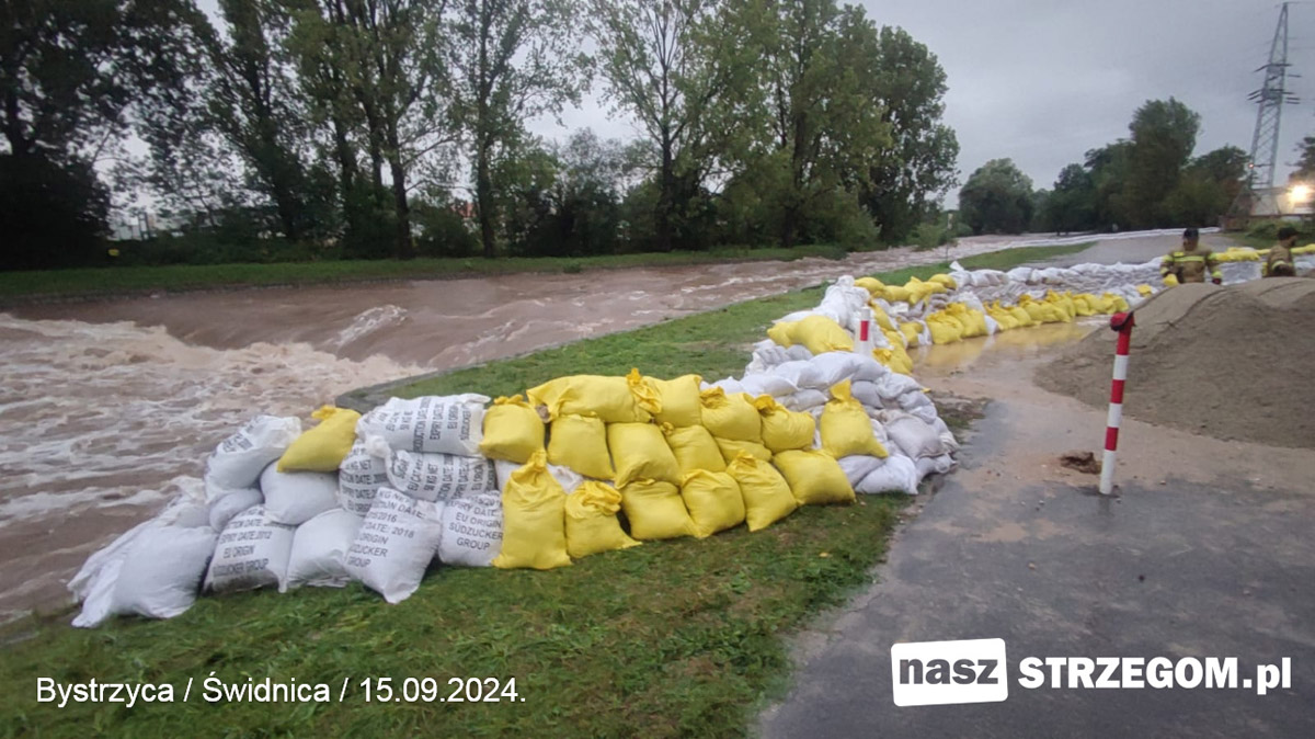 Ostatniej doby służby w powiecie świdnickim miały pełne ręce pracy w związku z intensywnymi opadami deszczu. Na wszystkich rzekach został przekroczony stan alarmowy. – Strażacy i mieszkańcy pracowali całą noc przy umacnianiu wałów przeciwpowodziowych. Dziś 15 września zapowiada się, że będzie podobnie – informuje mł. bryg. Łukasz Grzelak, zastępca komendanta Komendy Powiatowej Państwowej Straży Pożarnej w Świdnicy.
