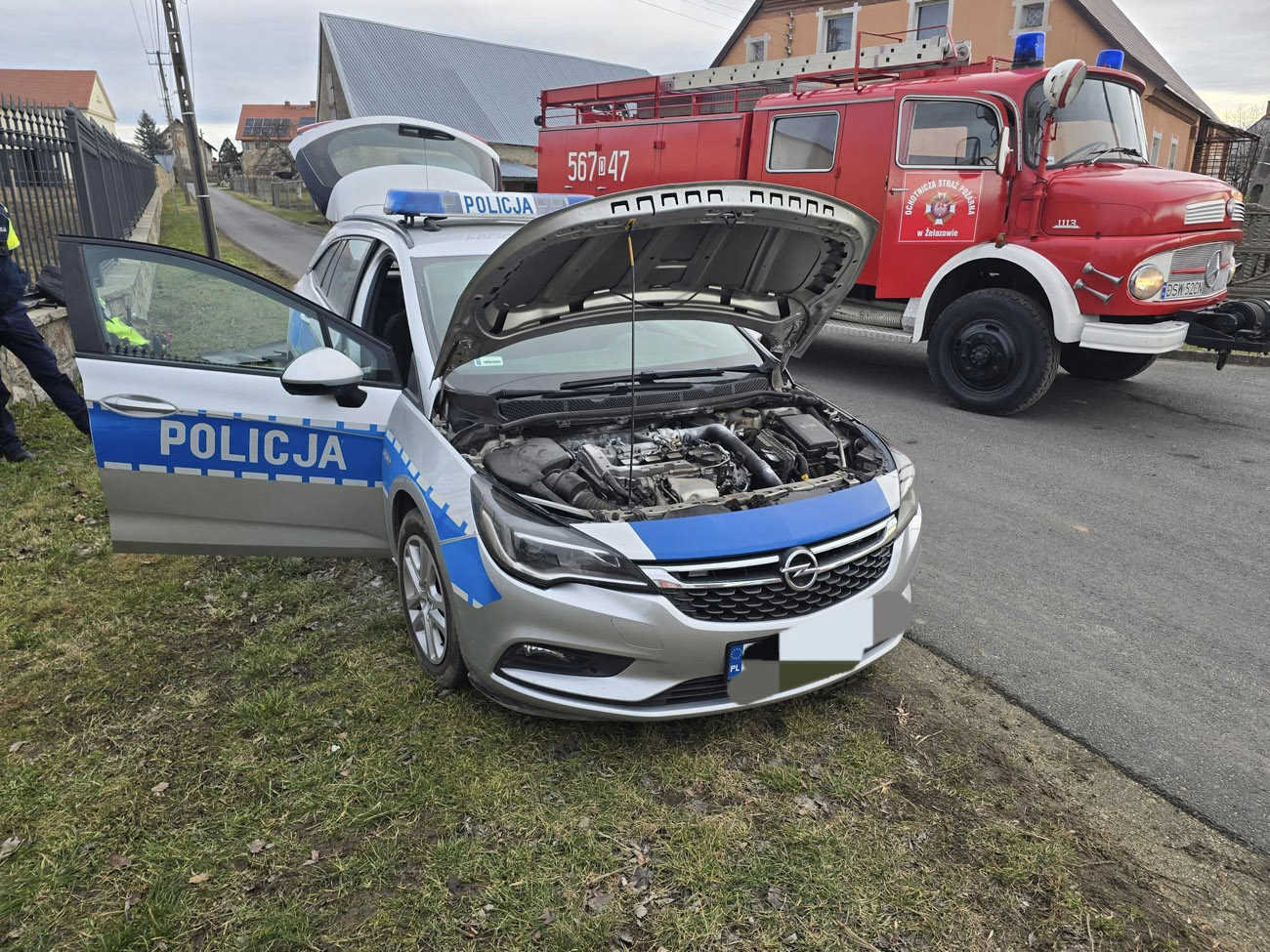 27 stycznia funkcjonariusze policji powiadomili straż pożarną o wydobywającym się dymie spod maski radiowozu. Do incydentu doszło w miejscowości Żelazów w gminie Strzegom.