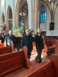 W 41. rocznicę męczeńskiej śmierci bł. ks. Jerzego Popiełuszki, kapelana „Solidarności” i duszpasterza ludzi pracy, do Bazyliki Mniejszej w Strzegomiu uroczyście wprowadzono jego relikwie. Kapłan został porwany i zamordowany 19 października 1984 roku we Włocławku przez funkcjonariuszy IV Departamentu Ministerstwa Spraw Wewnętrznych.