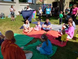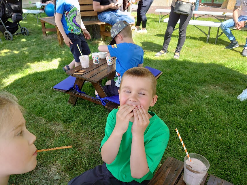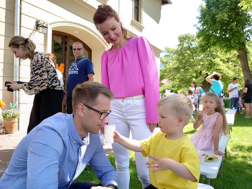 Po części artystycznej był smaczny poczęstunek, zabawy i krótkie zajęcia jogi dla dzieci i rodziców. Przedszkole w Morawie to bardzo klimatyczne miejsce, w którym widać silną więź dzieci i opiekunek. Jest to zapewne zasługa zasad wychowania Marii Montessori, którymi kierują się przedszkolanki w pracy z dziećmi.