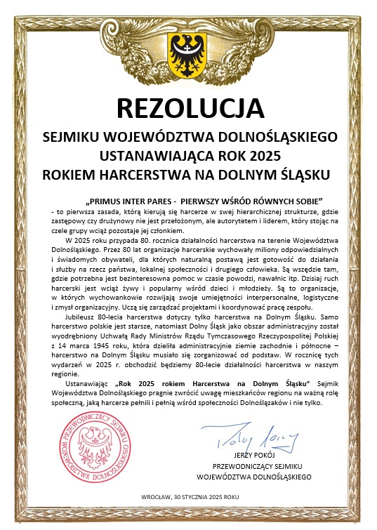 Sejmik Województwa Dolnośląskiego ogłosił rok 2025 Rokiem Harcerstwa na Dolnym Śląsku, upamiętniając 80-lecie działalności harcerzy w regionie. Inicjatywa ta ma na celu podkreślenie roli organizacji w kształtowaniu wspólnoty oraz postaw społecznych i obywatelskich wśród wielu pokoleń.