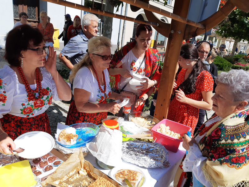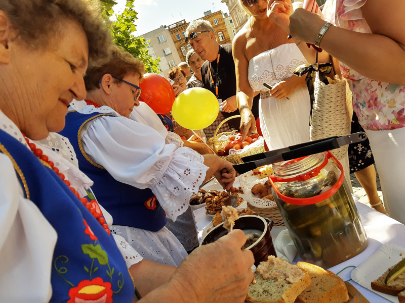Rynek Świata to tradycyjny punkt programu festiwalowych dni. Niedzielne spotkanie rozpoczęło się w Rynku od poloneza odtańczonego przez włodarzy miasta i zespoły folklorystyczne. Następnie każdy mógł skosztować potraw regionalnych, które serwowane były na specjalnych stoiskach m.in. przez zaproszonych gości.