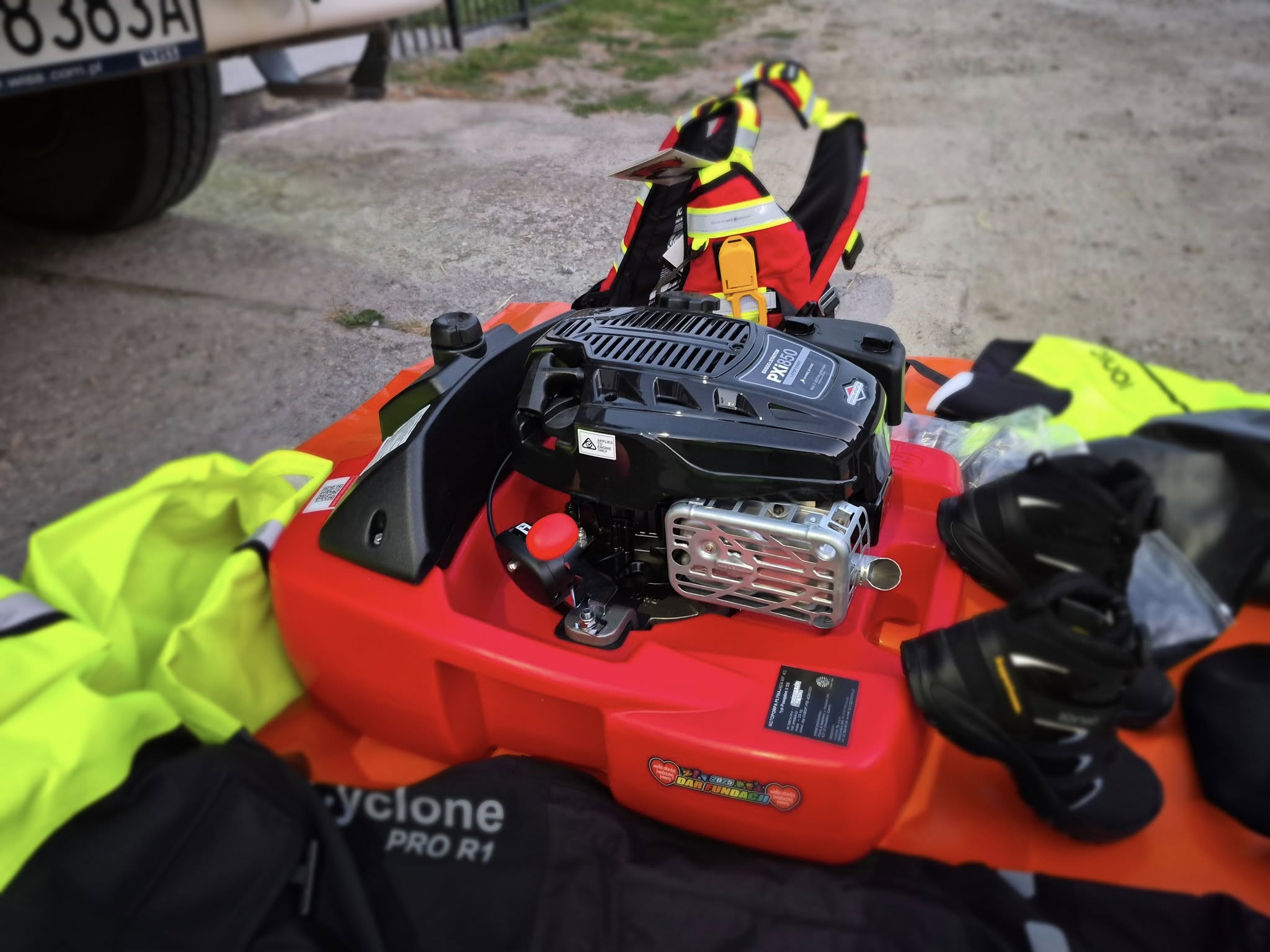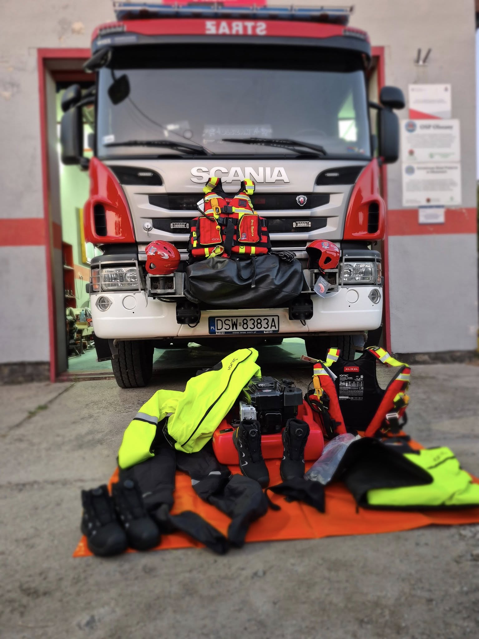 Wśród zakupionego wyposażenia znalazły się dwa skafandry do ratownictwa wodnego oraz dwie pary butów. Ratownicy otrzymali także dwie kamizelki asekuracyjne, wyposażone w gwizdek na retraktorze, nóż na smyczy oraz lonżę z karabinkiem zabezpieczonym gumką stabilizującą. Zestaw uzupełniają dwa kaski, dwie czapki neoprenowe dwie pary rękawic, a także pompa pływająca.