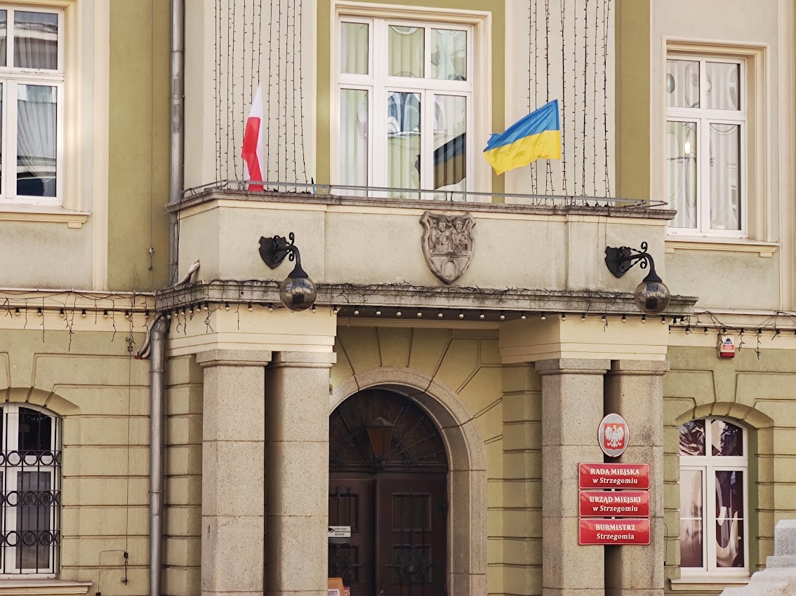 Gmina Strzegom przygotowuje się do zapewnienia pomocy obywatelom okupowanej Ukrainy. Na znak jedności z miastem partnerskim Podhajce, na balkonie strzegomskiego ratusza zawisła niebiesko-żółta flaga.