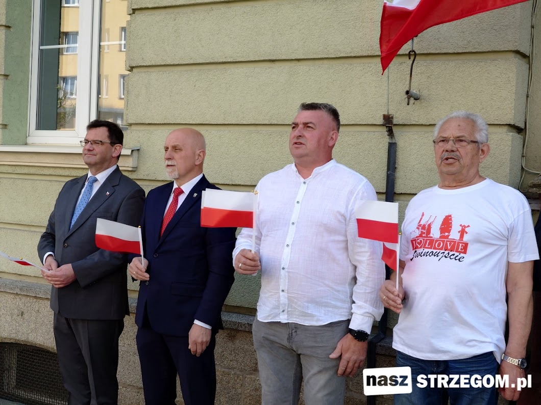 W symbolicznej uroczystości przed strzegomskim ratuszem wzięli udział samorządowcy oraz mieszkańcy.