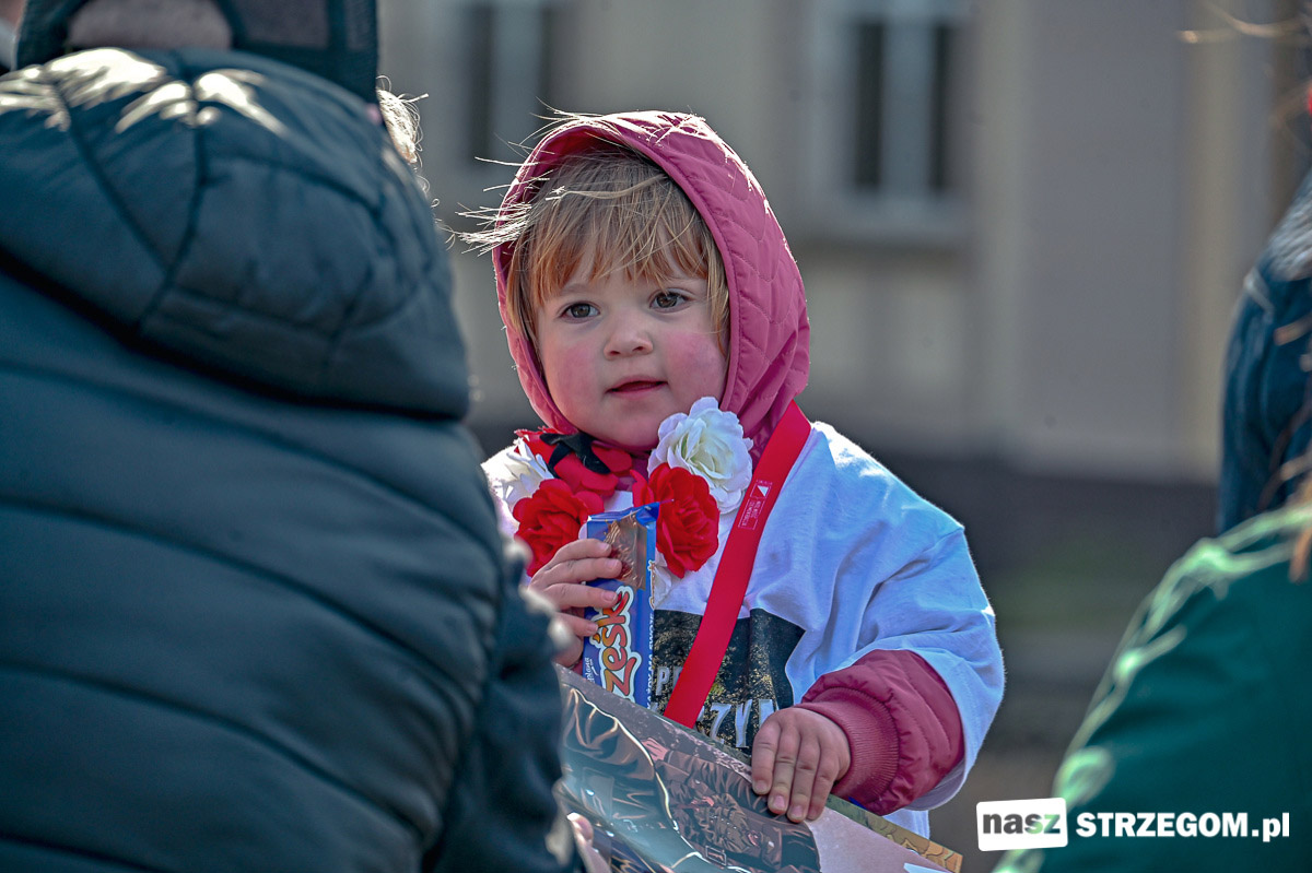Bieg poprzedziła krótka uroczystość i wspólne odśpiewanie hymnu Polski pod pomnikiem Żołnierzy Wyklętych. Wzięli w niej udział mieszkańcy, przedstawiciele samorządu, sympatycy Gazety Polskiej oraz Prawa i Sprawiedliwości, przedstawiciele Koła Sybiraków w Strzegomiu, Związku Harcerstwa Rzeczpospolitej, Związku Strzeleckiego Oddział Strzegom i innych organizacji.