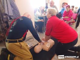 Spotkanie odbyło się w środę 12 marca. Druhowie z OSP Strzegom na fantomie ćwiczeniowym demonstrowali sztuczne oddychanie i masaż serca, a potem razem z uczestnikami ćwiczyli podstawy reanimacji. Pokazali również, jak w razie potrzeby korzystać z defibrylatora. Prezes strzegomskiej OSP Grzegorz Ratajski na wstępie wyjaśnił, dlaczego takie szkolenia są ważne. – Tu chodzi o to, żeby ludzie wiedzieli, jak się zachować, jak wezwać fachową pomoc medyczną, żeby po prostu nie bali się reagować.
