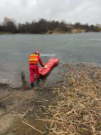 Strzegomscy strażacy ćwiczyli ratowanie życia na zamarzniętym zbiorniku wodnym w Rusku [FOTO]