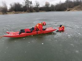 Specjalistycznego sprzętu, w tym sań lodowych, użyli strażacy do ewakuacji osoby, pod którą załamał się lód na zbiorniku wodnym w Rusku. Akcja odbyła się w ramach ćwiczeń z zakresu ratownictwa wodno-lodowego. Szkolenie odbyło się 14 lutego z udziałem druhów Ochotniczej Straży Pożarnej w Strzegomiu.