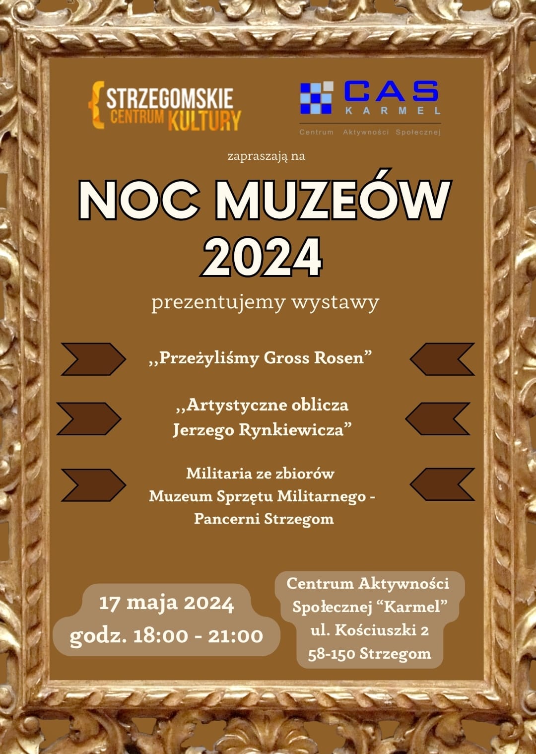 - W ramach wydarzenia zobaczyć będzie można wystawę „Przeżyliśmy Gross-Rosen”, a także „Artystyczne oblicza Jerzego Rynkiewicza”. Zaprezentuje się również Muzeum Sprzętu Militarnego – Pancerni Strzegom, które mieści się w budynku. Pracownik Strzegomskiego Centrum Kultury, przebrany w strój zakonny z chęcią oprowadzi po budynku Centrum Aktywności Społecznej oraz opowie co nieco na temat historii tego miejsca - informuje strzegomskie SCK.