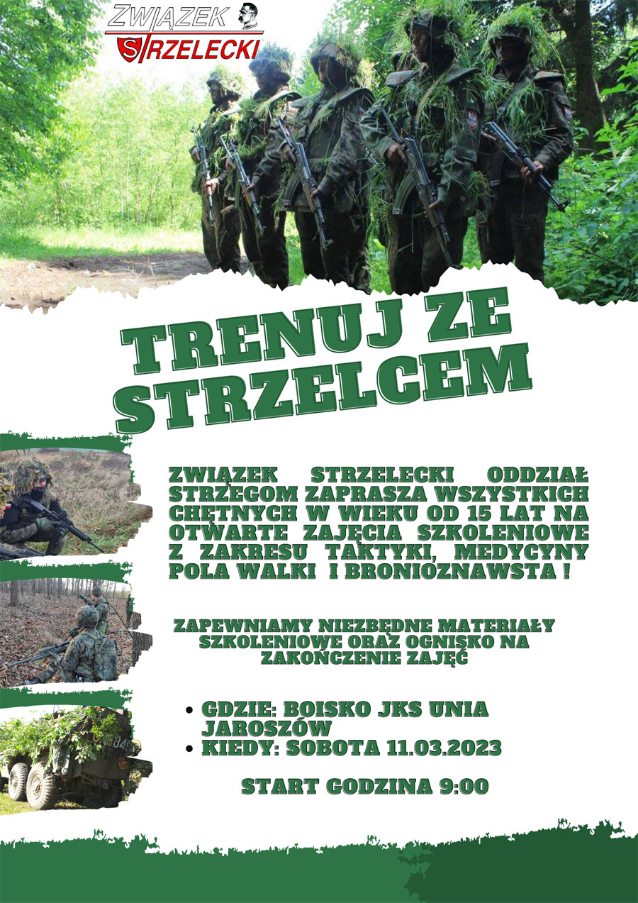 W sobotę, 11 marca od godziny 9.00 na boisku w Jaroszowie odbędą się otwarte zajęcia pod nazwą "Trenuj ze Strzelcem". Będą one okazją do zapoznania się z budową broni, nauką pierwszej pomocy przedmedycznej, działaniami taktycznymi i podstawami survivalu. Na zakończenie zaplanowano wspólne ognisko. W zajęciach mogą wziąć udział nieodpłatnie wszyscy chętni.