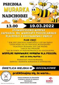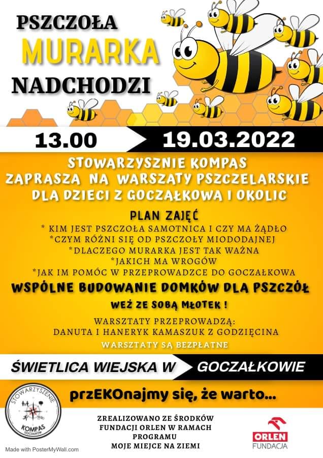Członkowie Stowarzyszenia Na Rzecz Rozwoju Wsi Goczałków „Kompas”, znani z aktywnych działań na rzecz lokalnej społeczności, 19 marca zorganizują warsztaty pszczelarskie, podczas których m.in. powstaną domki dla pszczół murarek. Współorganizatora, Karolina Jarosińska wskazuje, że misją przedsięwzięcia jest podniesienie świadomości ekologicznej wśród lokalnej społeczności.