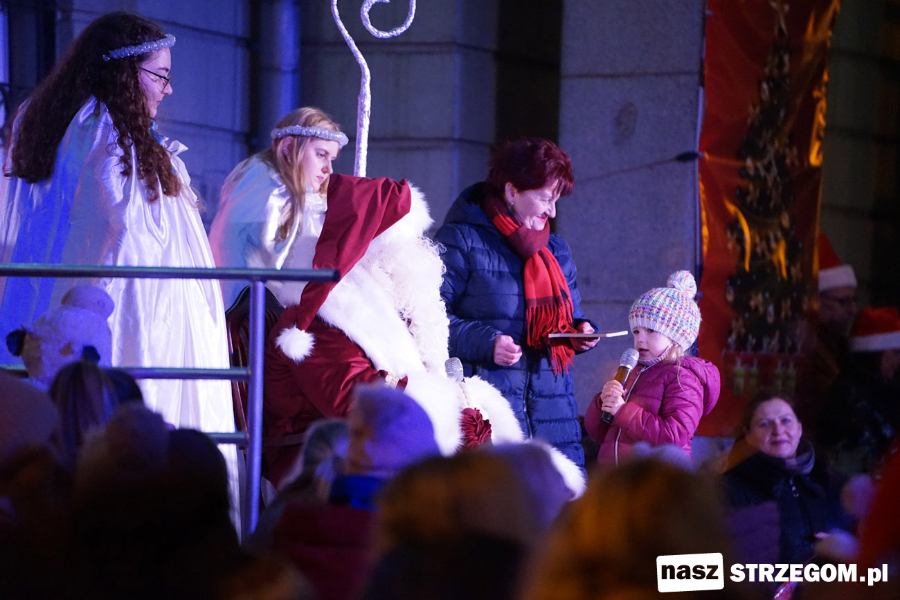 Spotkanie przy ratuszu otworzyli burmistrz Strzegomia Zbigniew Suchyta oraz dyrektor Strzegomskiego Centrum Kultury Elżbieta Pienio. Powitali gościa w czerwonej pelerynie i rozpoczęli wspólną zabawę. Święty Mikołaj nie żałował czasu na występy przybyłych dzieci, wspólne zdjęcia i tańce. Pomocnicy częstowali w tym czasie słodyczami i rozdawali upominki. W ich rolę wcielili się strzegomscy samorządowcy oraz przedstawiciele Strzegomskiej Grupy Motocyklowej.
