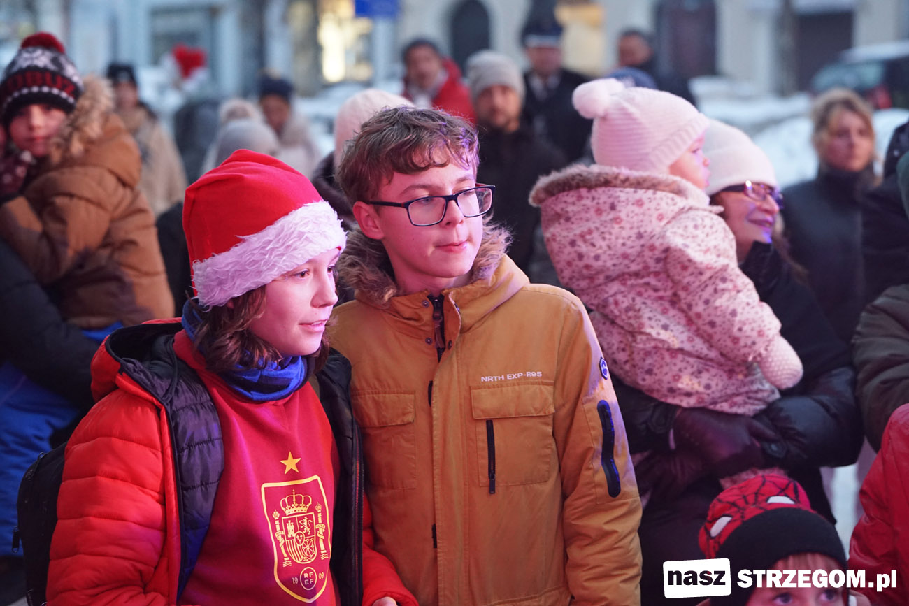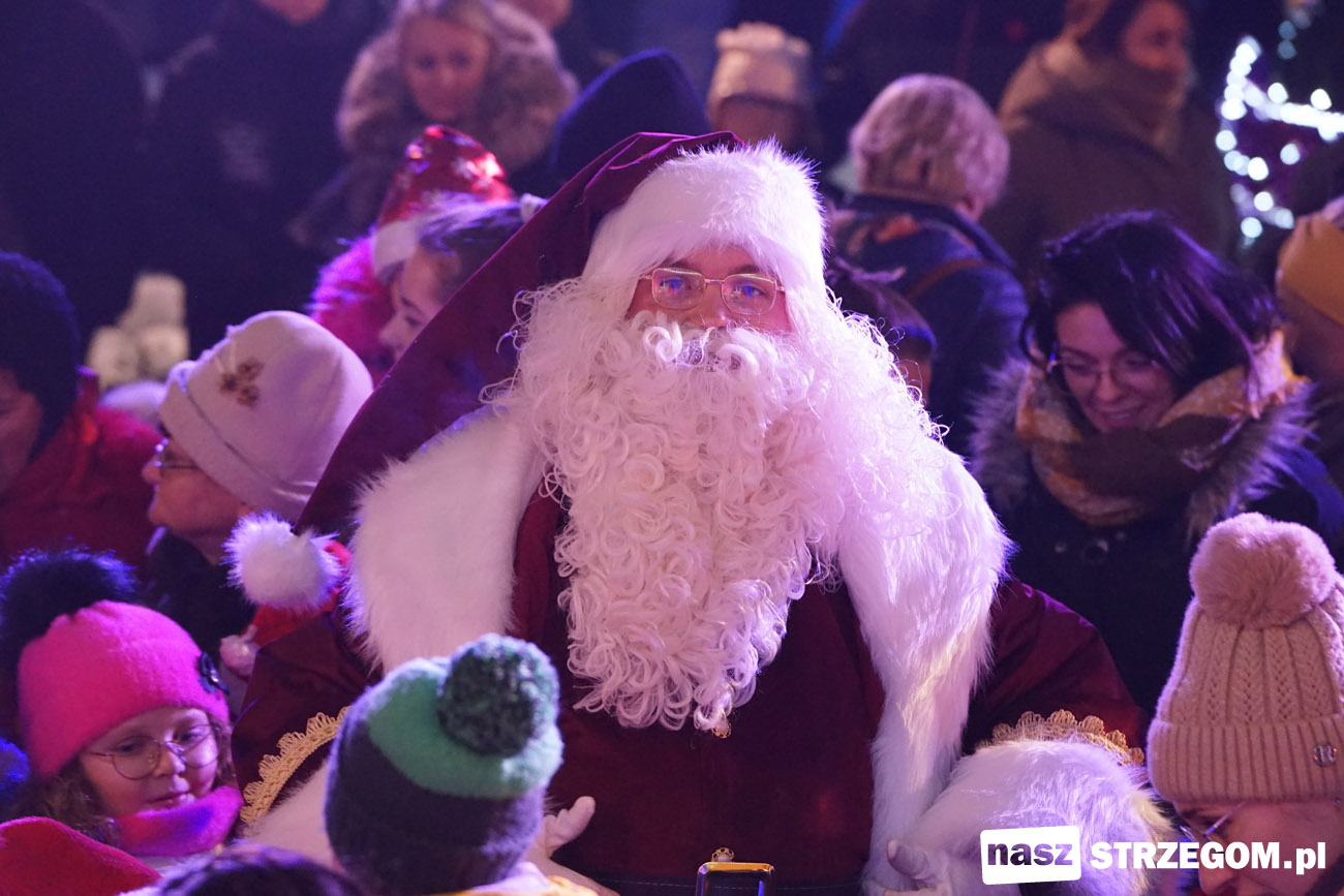 Święty Mikołaj rozświetlił choinkę przed strzegomskim ratuszem [FOTO]