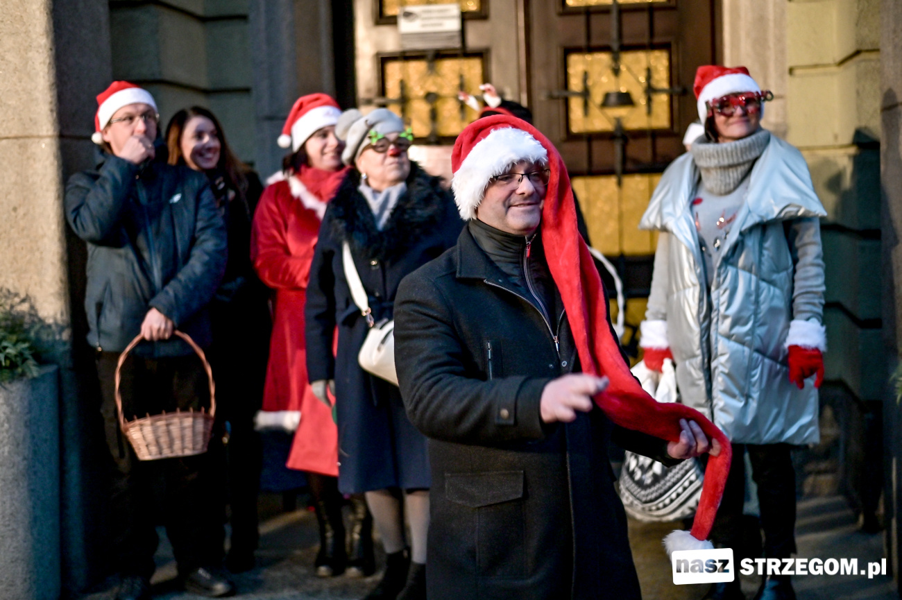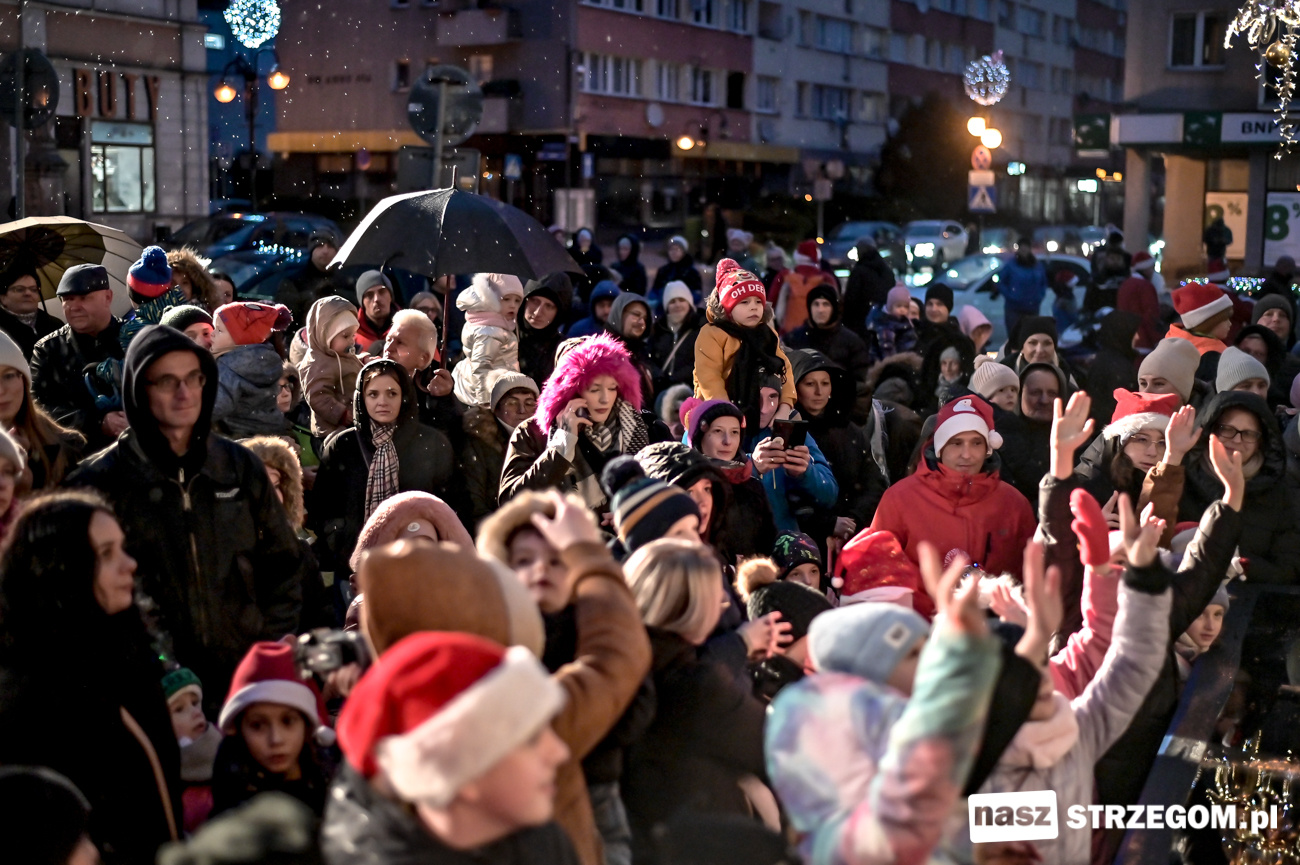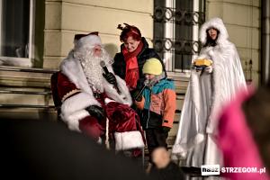Spotkanie przy ratuszu otworzyli burmistrz Strzegomia Krzysztof Kalinowski oraz dyrektor Strzegomskiego Centrum Kultury Elżbieta Pienio. Powitali gościa w czerwonej pelerynie i rozpoczęli wspólną zabawę. Święty Mikołaj nie żałował czasu na wspólne zdjęcia i zabawy z najmłodszymi. Pomocnicy częstowali w tym czasie słodyczami i rozdawali upominki. W ich rolę wcielili się strzegomscy samorządowcy oraz przedstawiciele Strzegomskiej Grupy Motocyklowej, którzy na Rynek przybyli świątecznie ozdobionymi pojazdami.