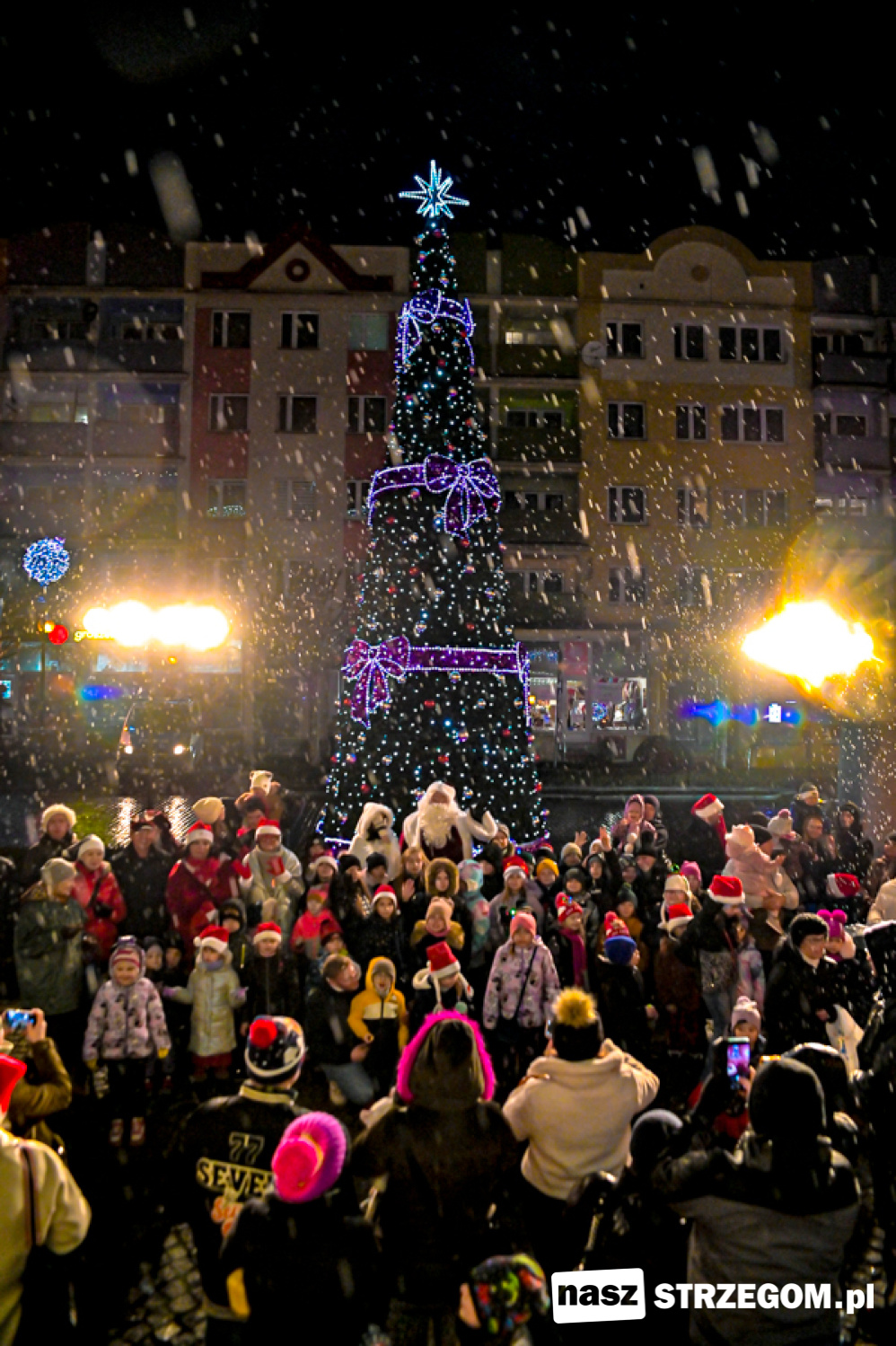 Święty Mikołaj rozświetlił choinkę przed strzegomskim ratuszem [FOTO]