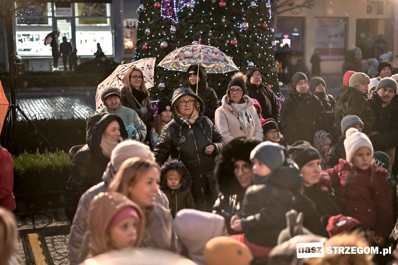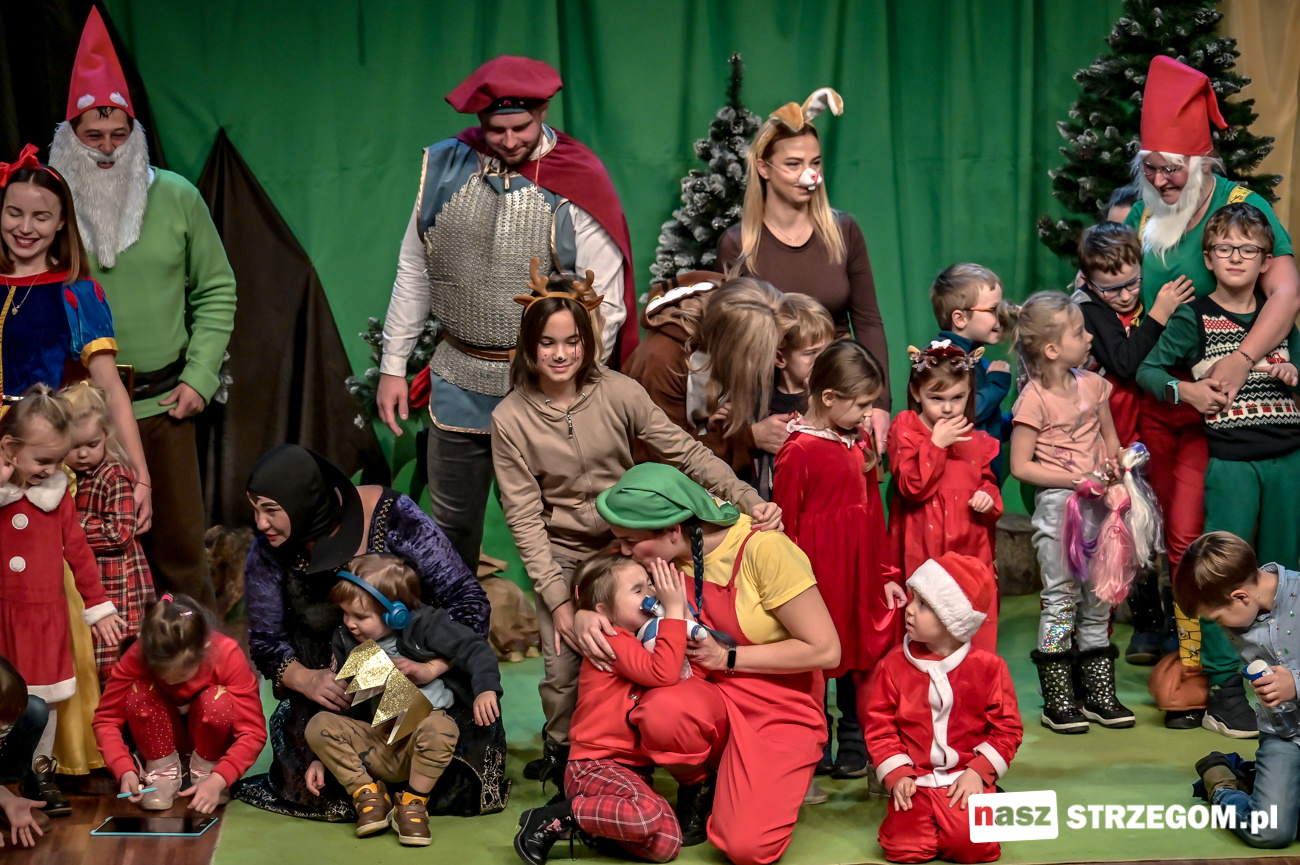 Po uruchomieniu iluminacji na strzegomskiej choince, Święty Mikołaj przeszedł z dziećmi ulicami miasta do Strzegomskiego Centrum Kultury, gdzie rodzice z Przedszkola nr 1 z Oddziałem Integracyjnym w Strzegomiu wystawili spektakl pt. „Królewna Śnieżka i 7 Krasnoludków”.