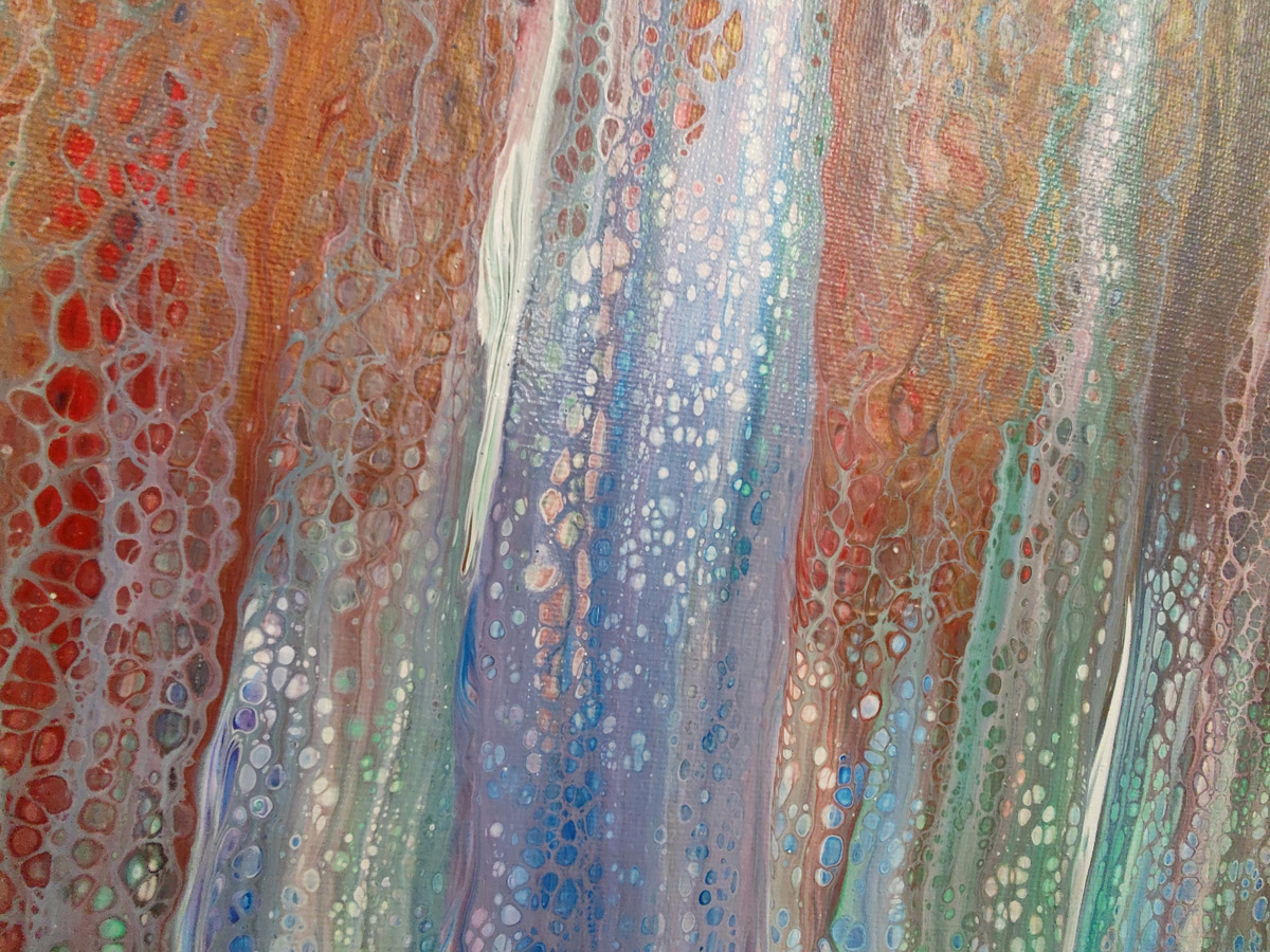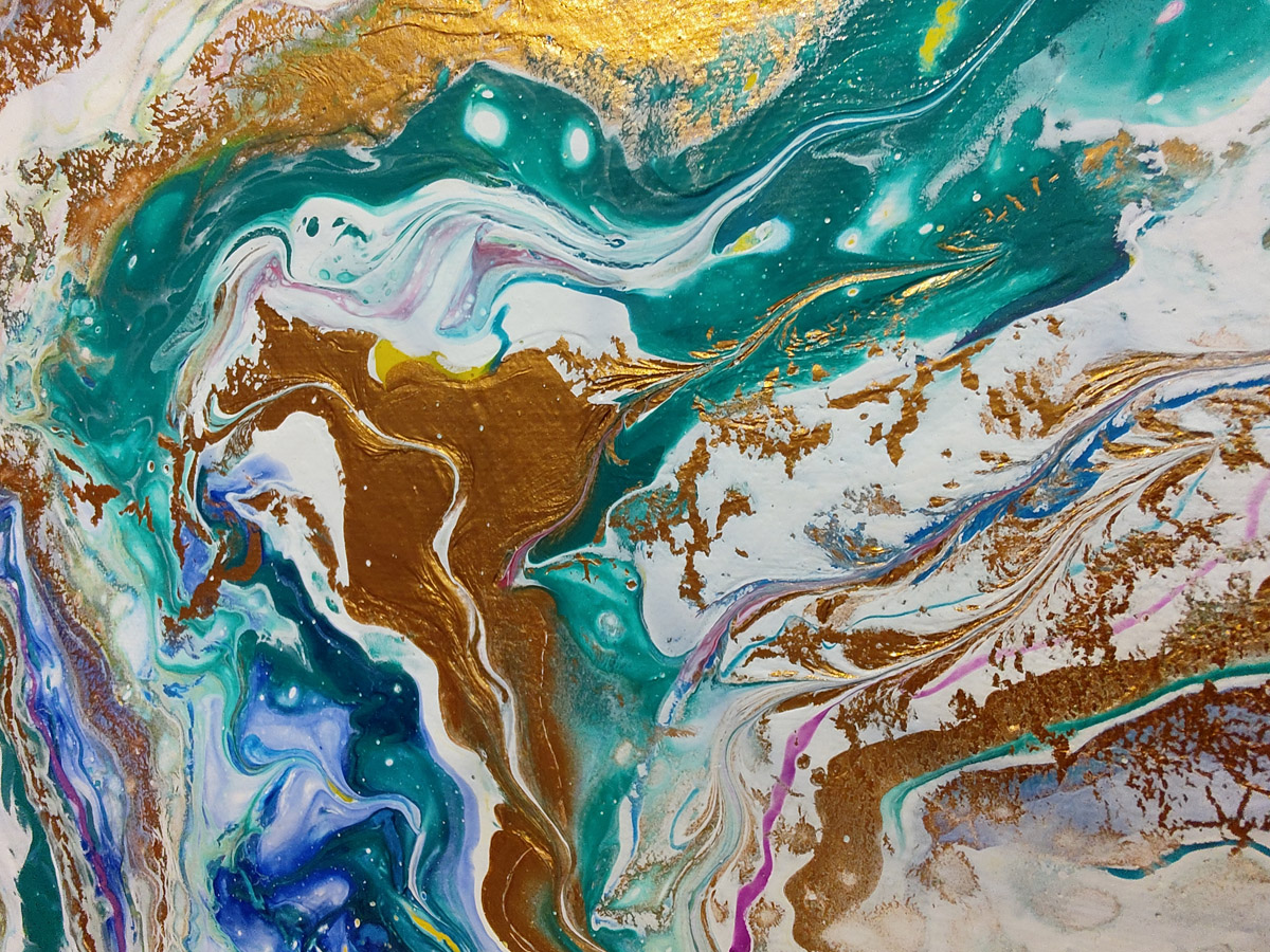 10-letnia Julia tłumaczy, że największą frajdę w malowaniu techniką pouringu sprawia jej wylewanie farb i efekt końcowy, ponieważ ten zawsze jest niespodzianką.